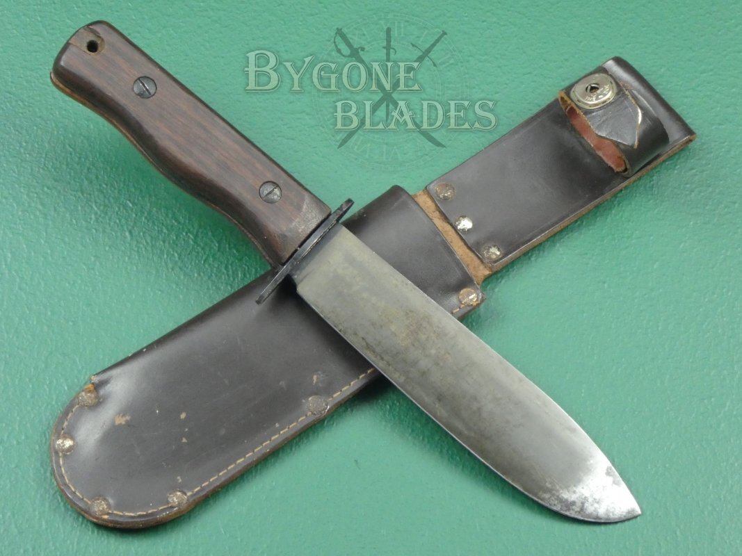 I'd like to show light on a lesser-known military Survival knife:Wilkinson type D, used by Royal Air Force.Used since 1950's, it has received very little attention in the media. Possibly because of it's simplicity. When they were designing it, they thought "Let's not try to reinvent the wheel" but just made a simple, solid chopper. No bells or whistles. No supermaterials or fancy gimmicks.A sturdy, thick blade with full tang construction, wooden handle, leather scabbard and that's about it. It looks almost like a kitchen knife. Maybe that's why it has received so little attention? it's not "cool"? But it looks like you can do bushcraft/survival stuff with it just fine. I have heard that out of the box, it does have some issues: The handle is often thicker than the tang, meaning it leaves an awkward gap between the wooden handle plates - you may have to sandpaper it a bit to smooth it out. Also, tends to be shipped somewhat dull, and needs to be sharpened by the user to get a decent edge. But once sharpened, it'll do the job. Haven't even heard of this one until this week, so I thought I'd give it a little shout-out. Anyone who has actually used one out on the field? I'd like to hear some experiences you might have with it.