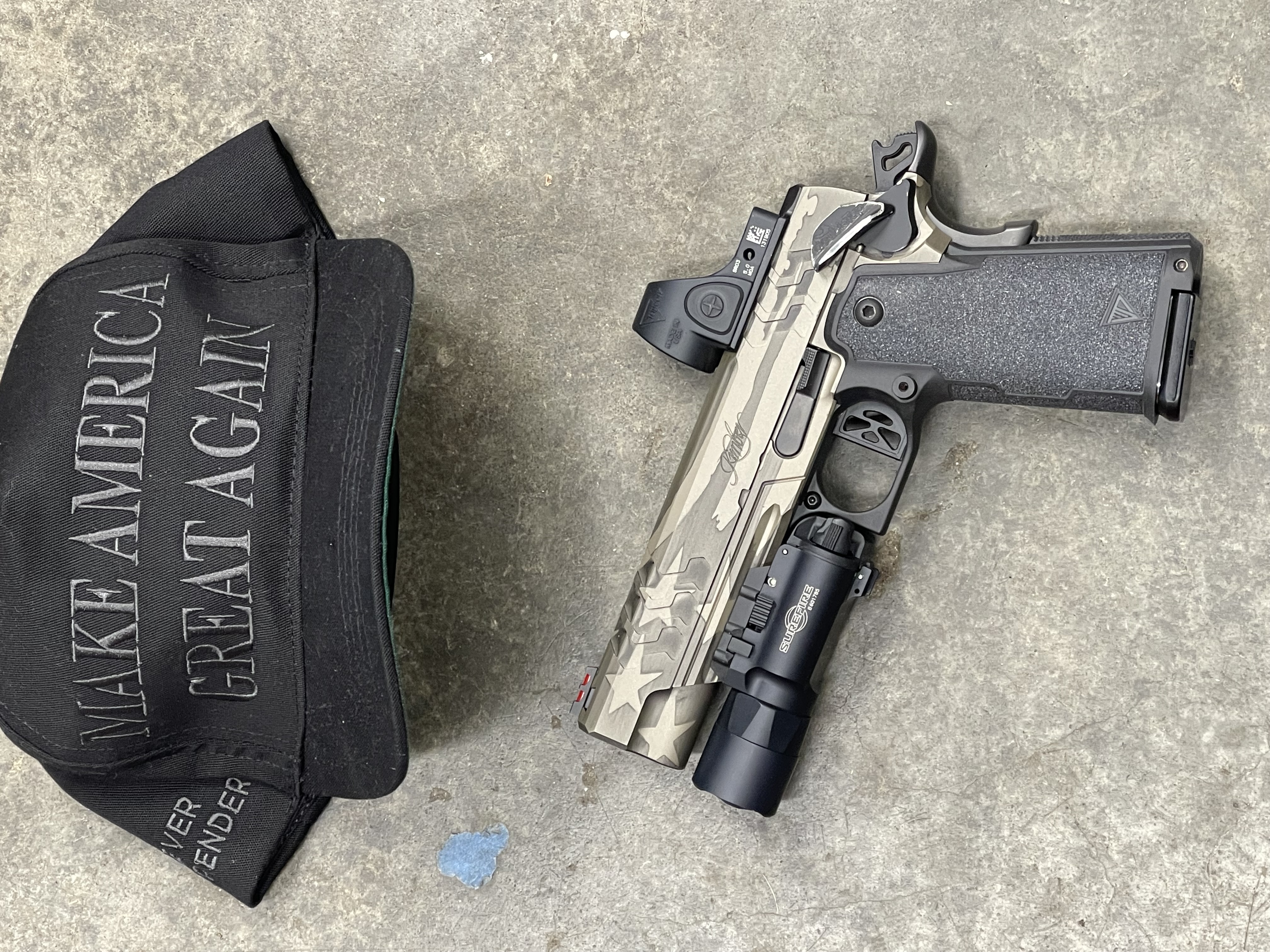 >>64413847>the tlr as well.Well, at least you can take that off.J/K, it's a solid light, but the switch is very easy to activate. That's not really a problem for 99.8% of people. Does it include a holster? I think you are on the right track, but the holster would seal the deal. Any mags or other extras you could get him to throw in?