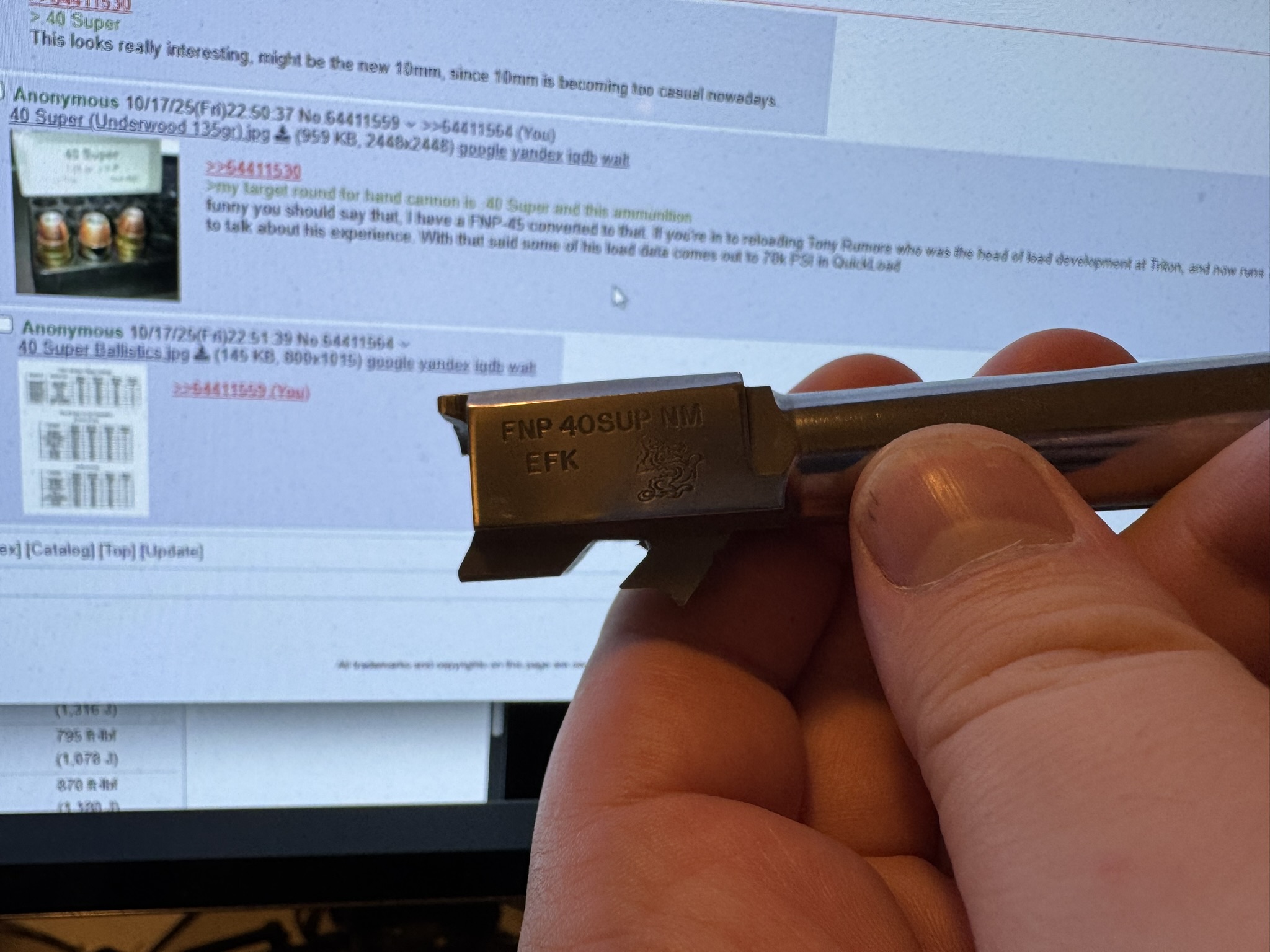 >>64408422>>64408814Whoever it was confiscated off of went by the name BOT from the name engraved into it. They spent $80 for grips and a lot of time engraving every piece of the slide and barrel, but couldn't be arsed to give it a proper finish other than gold glitter and silver sharpie. It's like they ran out of money and time while on their meth bender.