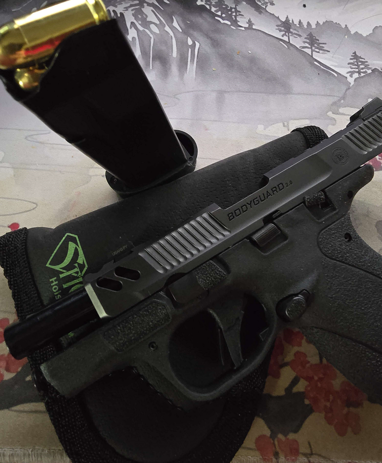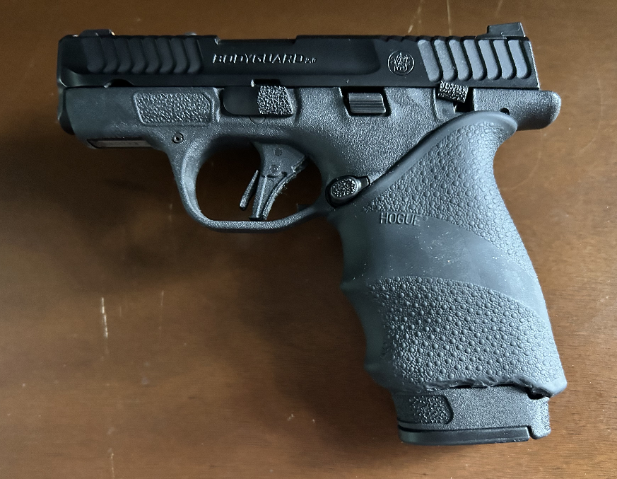 >>64415789If you're having trouble at distance shooting the issue can be not being used to such a skinny grip. Buy a hogue grip for like $15 bucks and throw it on a the range I bet you'll shoot better.I personally got the small tactical grip and just the bottom of it a little with a box cutterhttps://www.hogueinc.com/handall-tactical-grip-sleeve-small-blackThey sell grips that are actually for the bodyguard 2.0 now but I haven't tried it since my tactical one I got before they had them works good enoughhttps://www.hogueinc.com/grips/smith-wesson/bodyguard-2-0/handall-beavertail-grip-sleevesPic related my lazy box-cut tactical on my bodyguard. I wanted it cut so I could use the 10 round and have it perfectly flush without the cut it stuck over it a mm or two which annoyed me