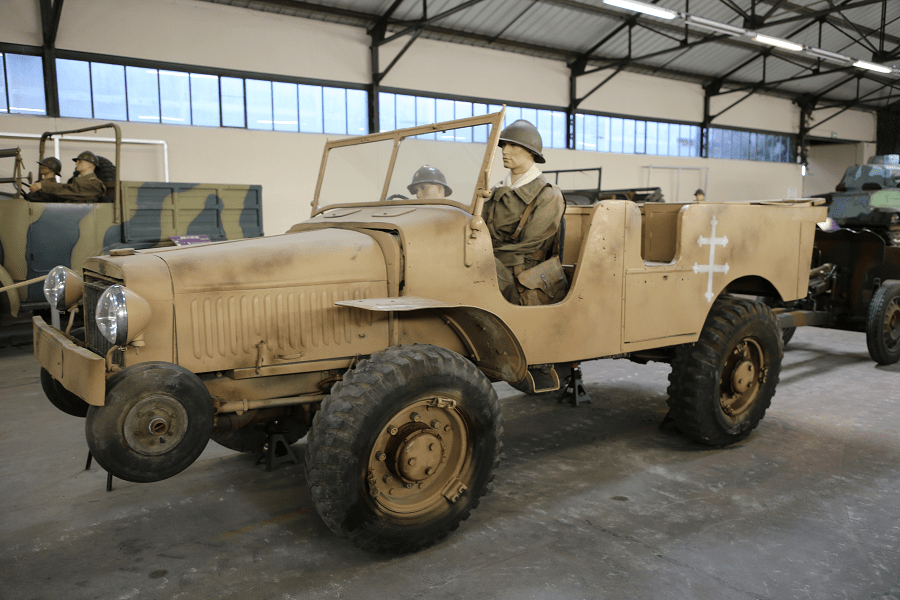 >>64414105WWII French vehicles optimized for trench/ditch crossing.When the front drive wheels go into the trench/ditch, the small front unpowered wheels are already in contract with the opposite embankment preventing it from digging in and getting stuck. The rear drive wheels then power the vehicle forward until the front drive wheels pull it up and across. The small unpowered wheels under the chassis prevent the vehicle from being high centered.