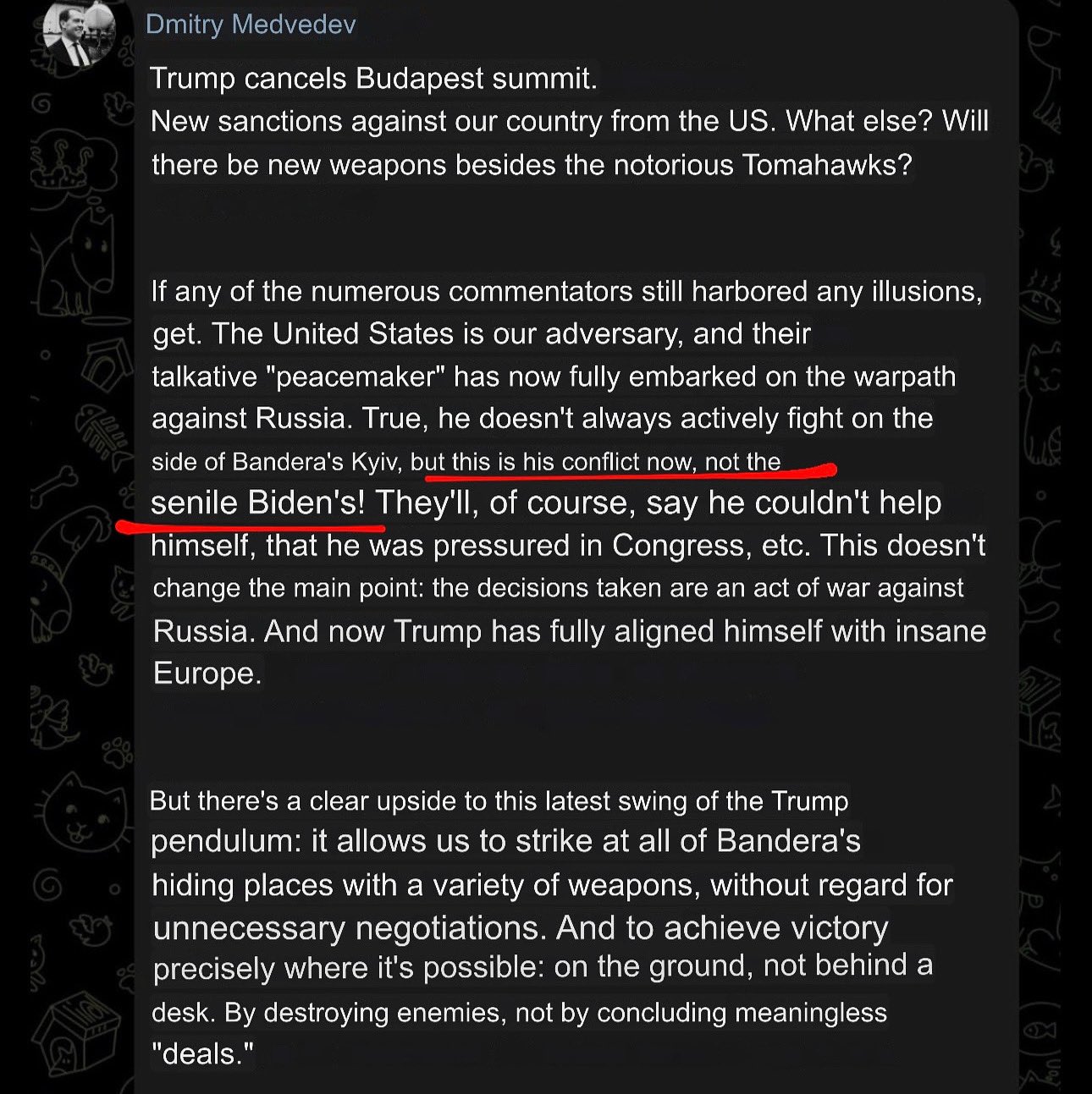 >>64430990>>64431629>This shit at the same exact time Trump sanctions Russian oilHow long until Medvedev calls Trump a nigger on X?