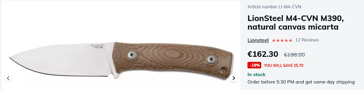 I can pick up a discounted Fallkniven F1 in VG-10 / VG-WOLF for ~150 USD (130 EUR)