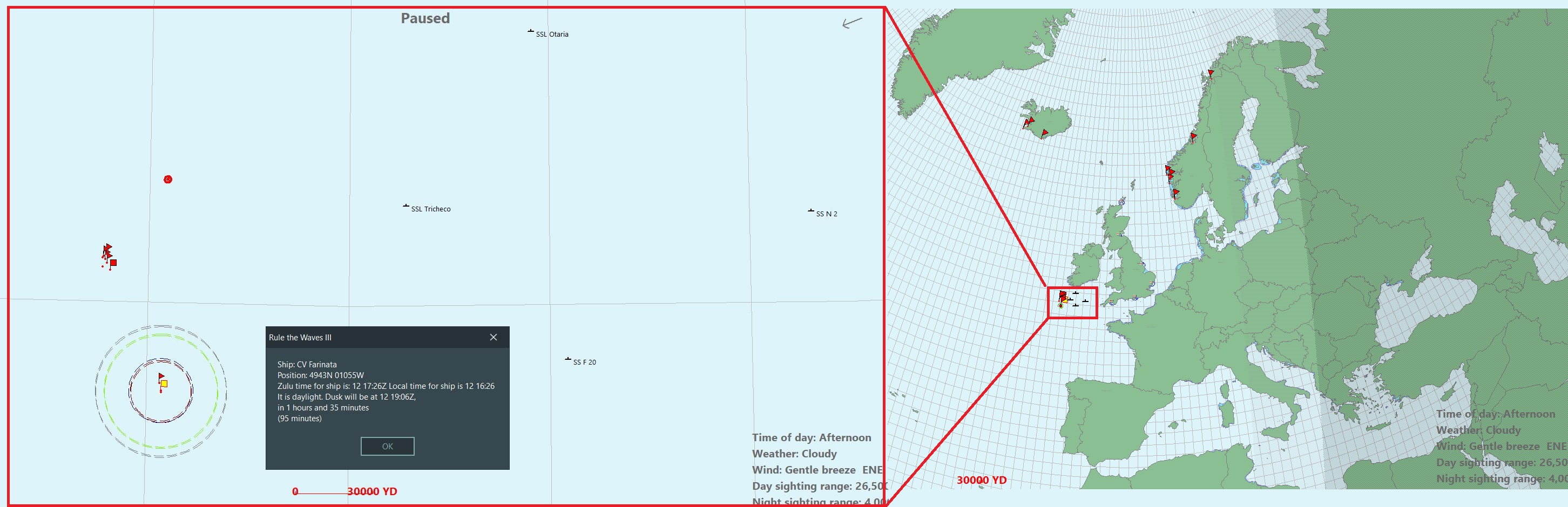 Our forces in Northern Europe attempt to interdict a few British convoys, but tipped off the cowardly Anglos call off the voyages. Good for victory points but boring to see a series of declined battles.