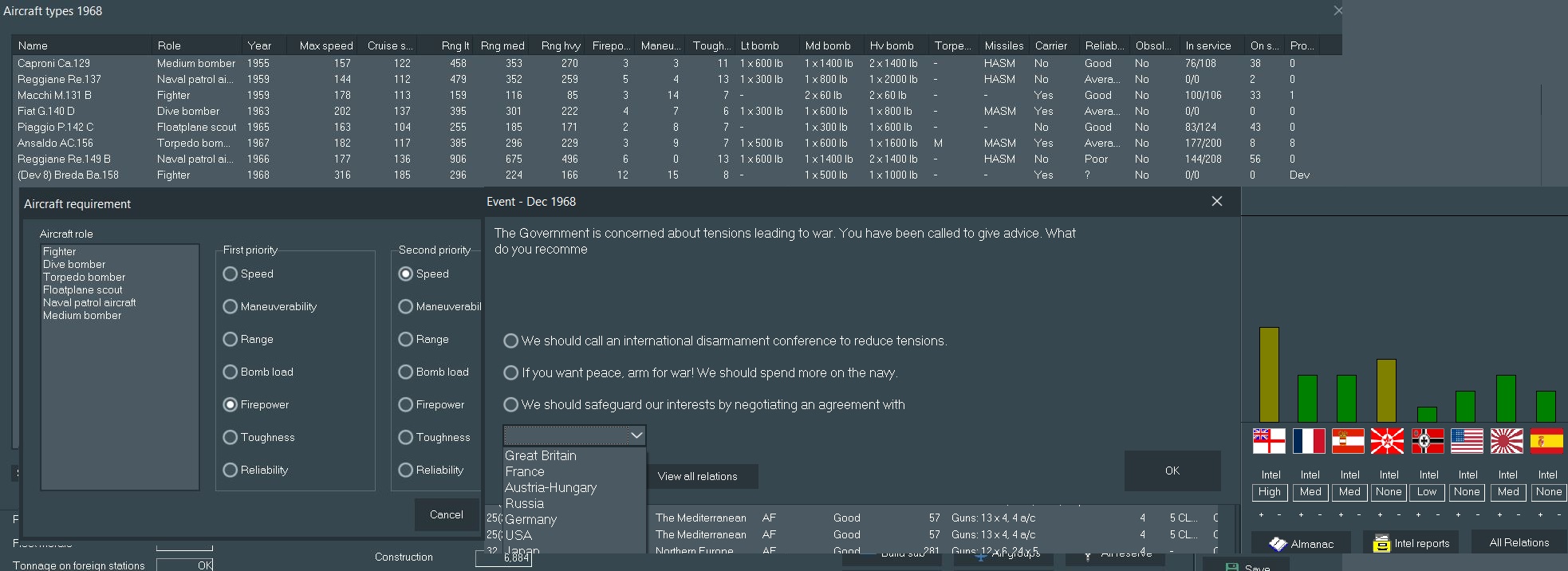 LJF request sent off with a prioritization of speed and firepower. The topic of the old fleet is worth broaching at this point - most of our gun-centric fleet is sitting in reserve, and the utility of it in future conflicts is in question. Most of the world seems to have given up on the battleship, while the battecruiser appears to be getting a bit of a revival in some places. I think our carrier fleet needs some consideration, our first gen designs are struggling with worn out engines with a max speed of 23kts.