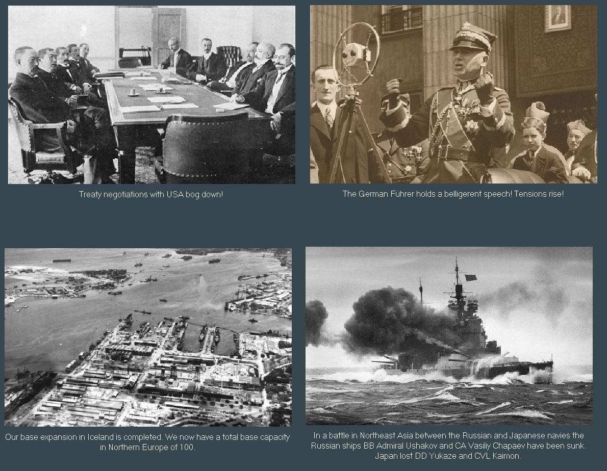 The war is largely taking place on one of two fronts. On the Northern European front, our warships based out of Italian Scandinavia maintain a presence to keep the British fleet from operating with impunity.