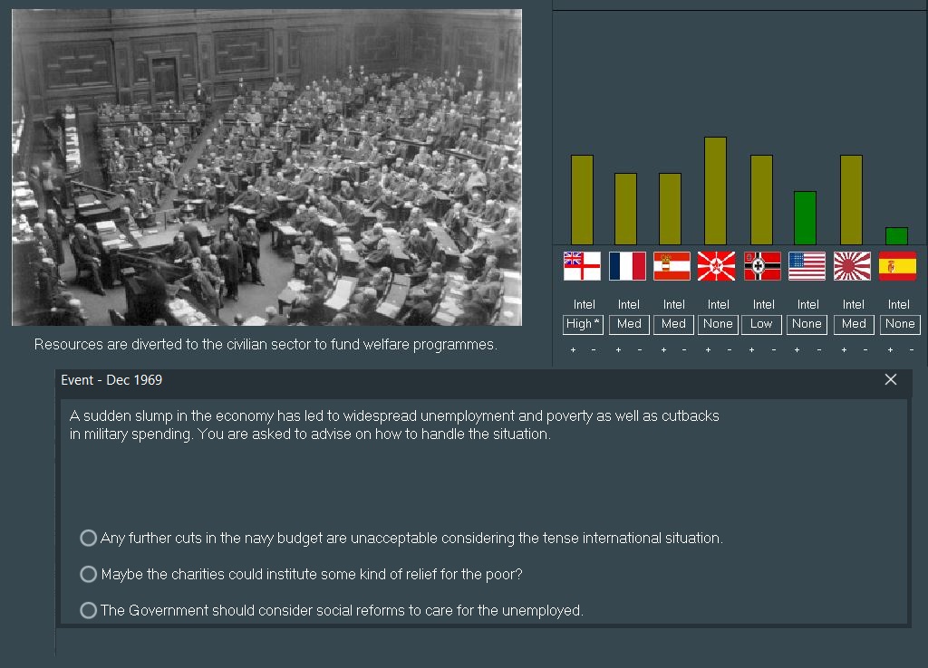 Rule the Waves is a naval management/strategy game where you take on the task of designing botes, managing the fleet and conducting them in battle. All well and good, but true to life things will never go according to plan. You'd love to lay down a new class of warship, but your engineers swear up and down they've almost figured out new armor forging process that'll make them so much better if you just wait a few more weeks. They've said that for the last six months. You tell your Prime Minister that war with Spain is an easy victory, only to find the next morning to find Spain signed a military alliance with Great Britain. In the war that follows, your destroyers misunderstand the signal flags for “Screen our ships from torpedo attacks” as “Suicidally charge the enemy fleet”. Under blockade from the perfidious Anglos, your ungrateful people keep demanding things like food, don't they know there's a war going on? After four years of war, the Americans step in to mediate a peace the Prime Minister agrees to: no territory changes or reparations, but enjoy a peacetime budget cut and an aging, worn out fleet.