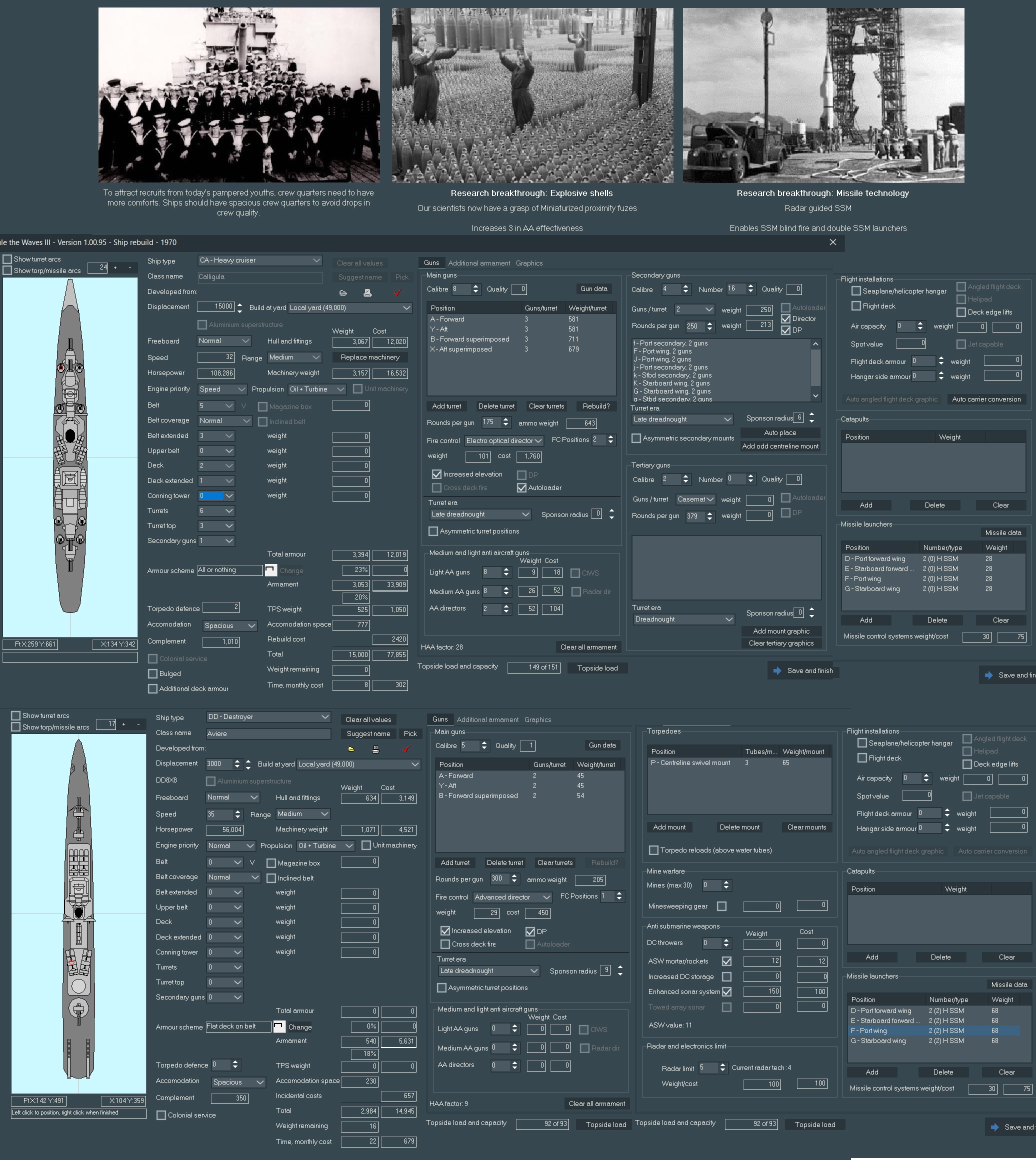 Currently the budget is sufficient to support a fairly decent destroyer programme, but we could definitely add on a major surface ship or two to our construction program, or alternatively go for more major refits. Should we be trying to modernize the old fleet, or go more clean slate?