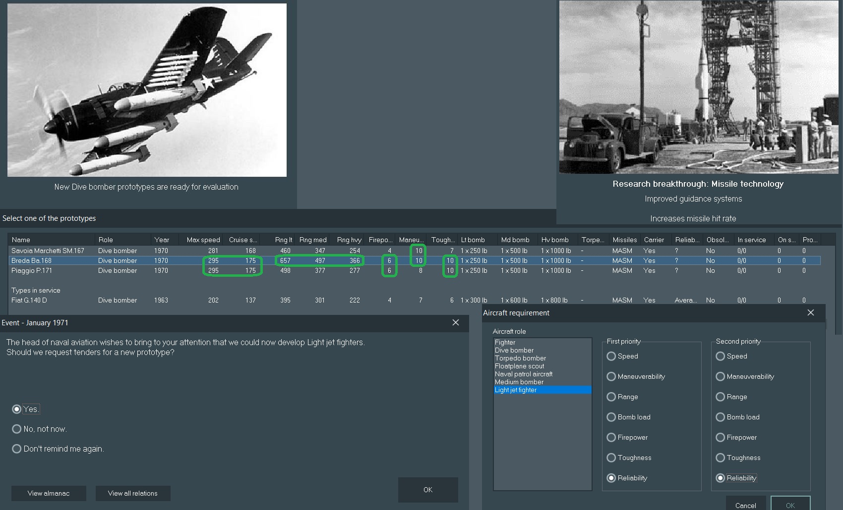 New fighter request sent off, although it may take a depressingly long time before we see any prototypes. Funnily enough, we get a radar unlock to allow us to operate night fighter squadrons.