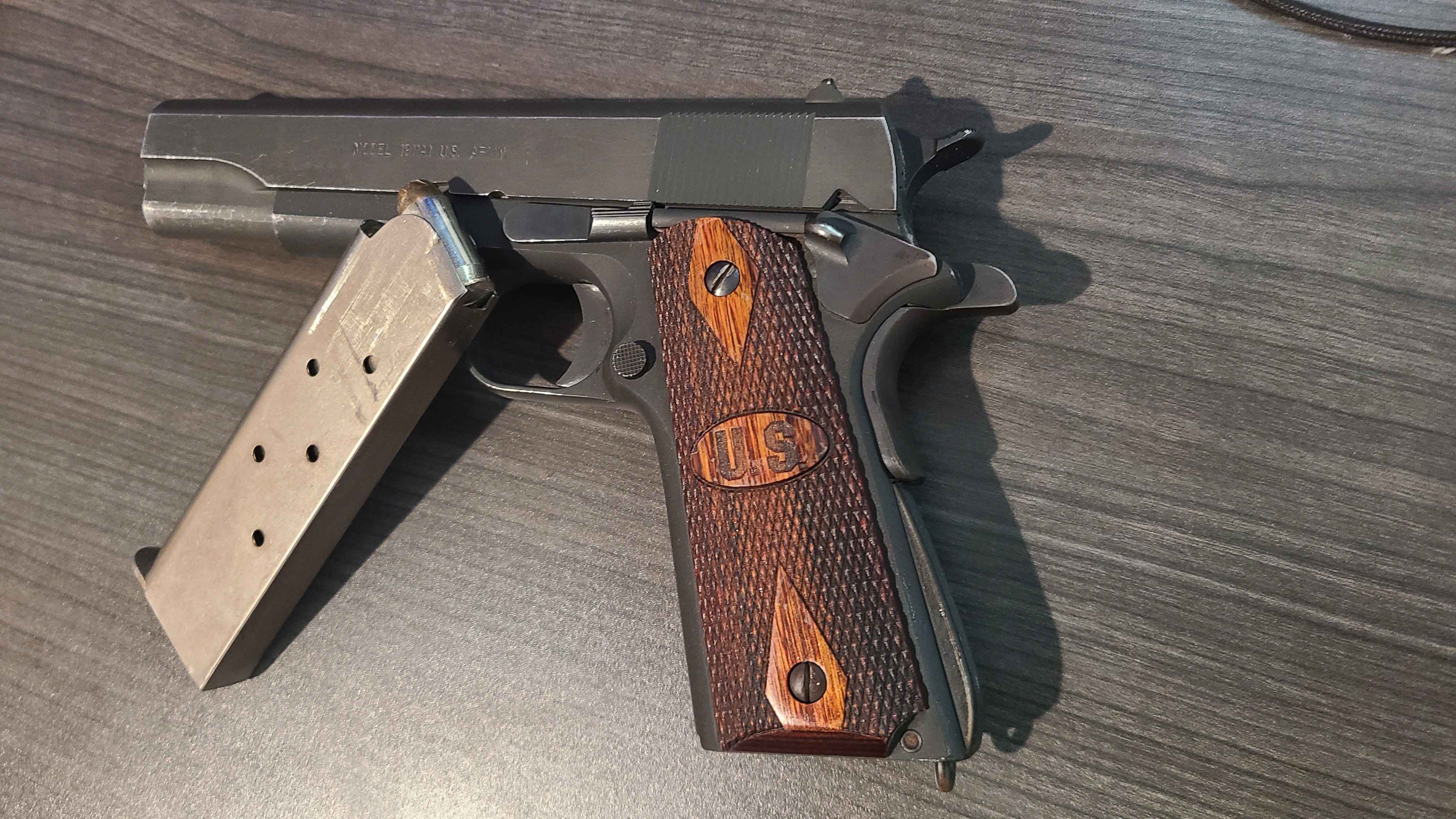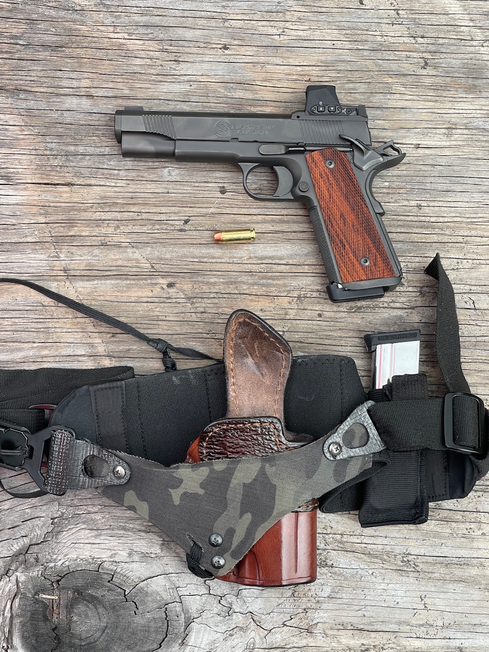 >>64449404Said ronin (It didn't come with a crimson trace, i had one lying around for a decade, the batteries are dead, but i feel the black rubber goes better with the 2tone than the stock wood grips