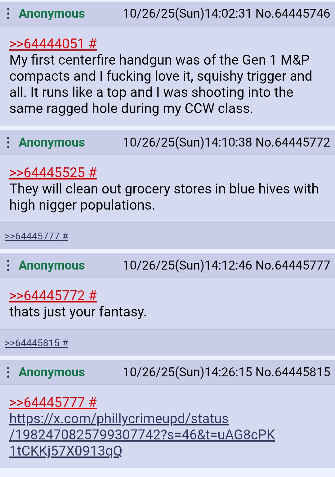 >>64441631>>64443556>>64444043>I am le heckin super secret squirrel and cover my serialsFor the last time, the general public cannot trace your gun with your serial you tryhards. Certainly no one here has access to the NICS database.