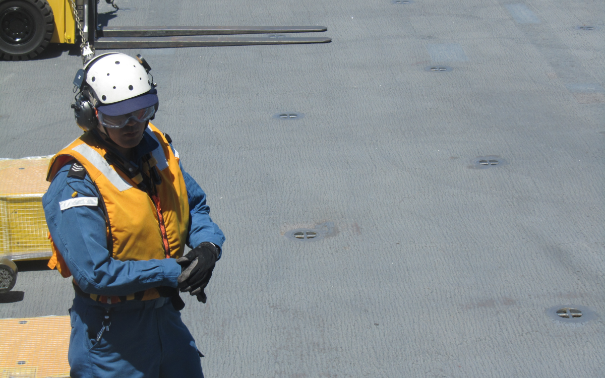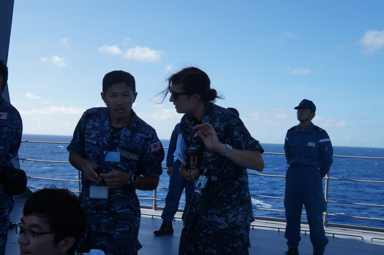 Also see the bored / annoyed U.S. Navy PIO on the far right. The U.S. always assigns a public affairs babysitter to the press.