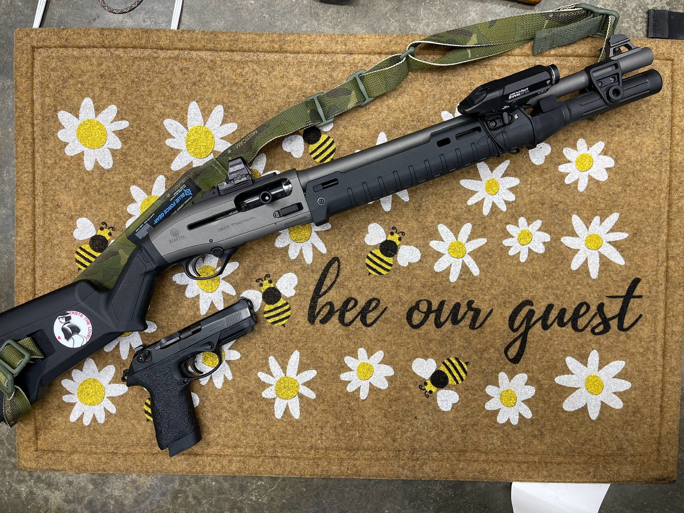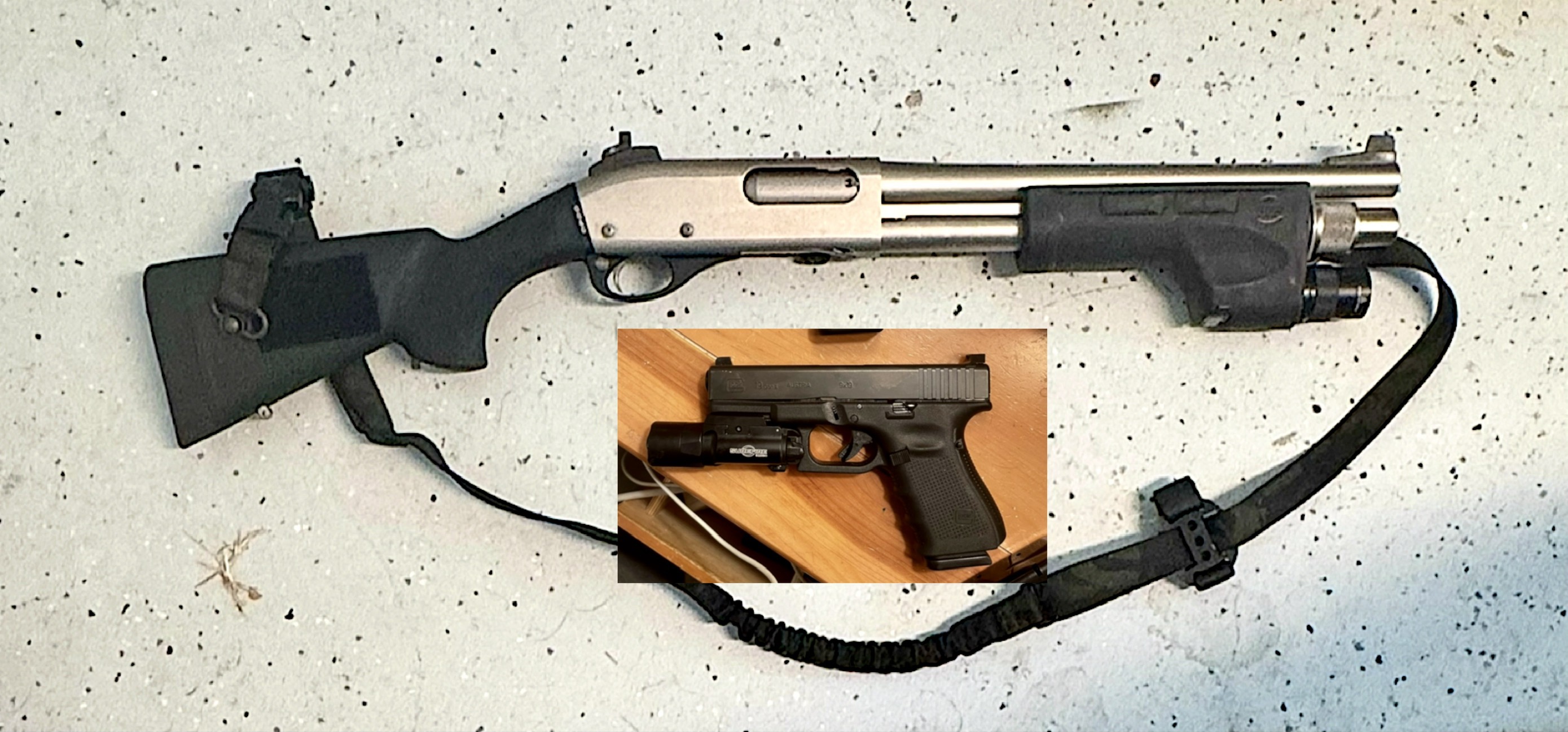 A beretta 1301 in one room and an 11.5 AR in another