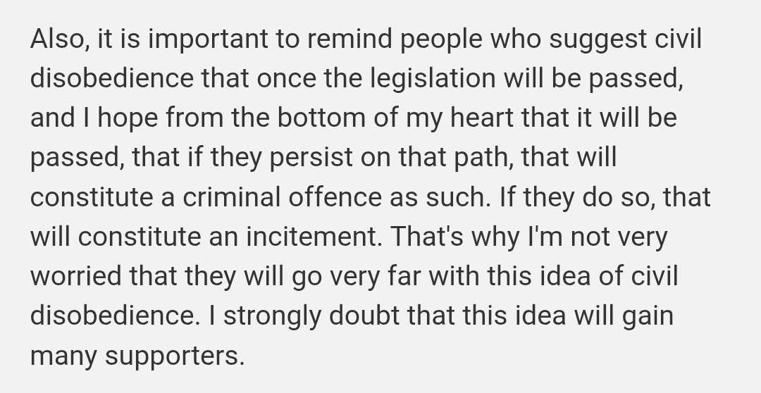 > I strongly doubt that this idea [civil disobediance] will gain many supporters.laughs in "up to 22 firearms"