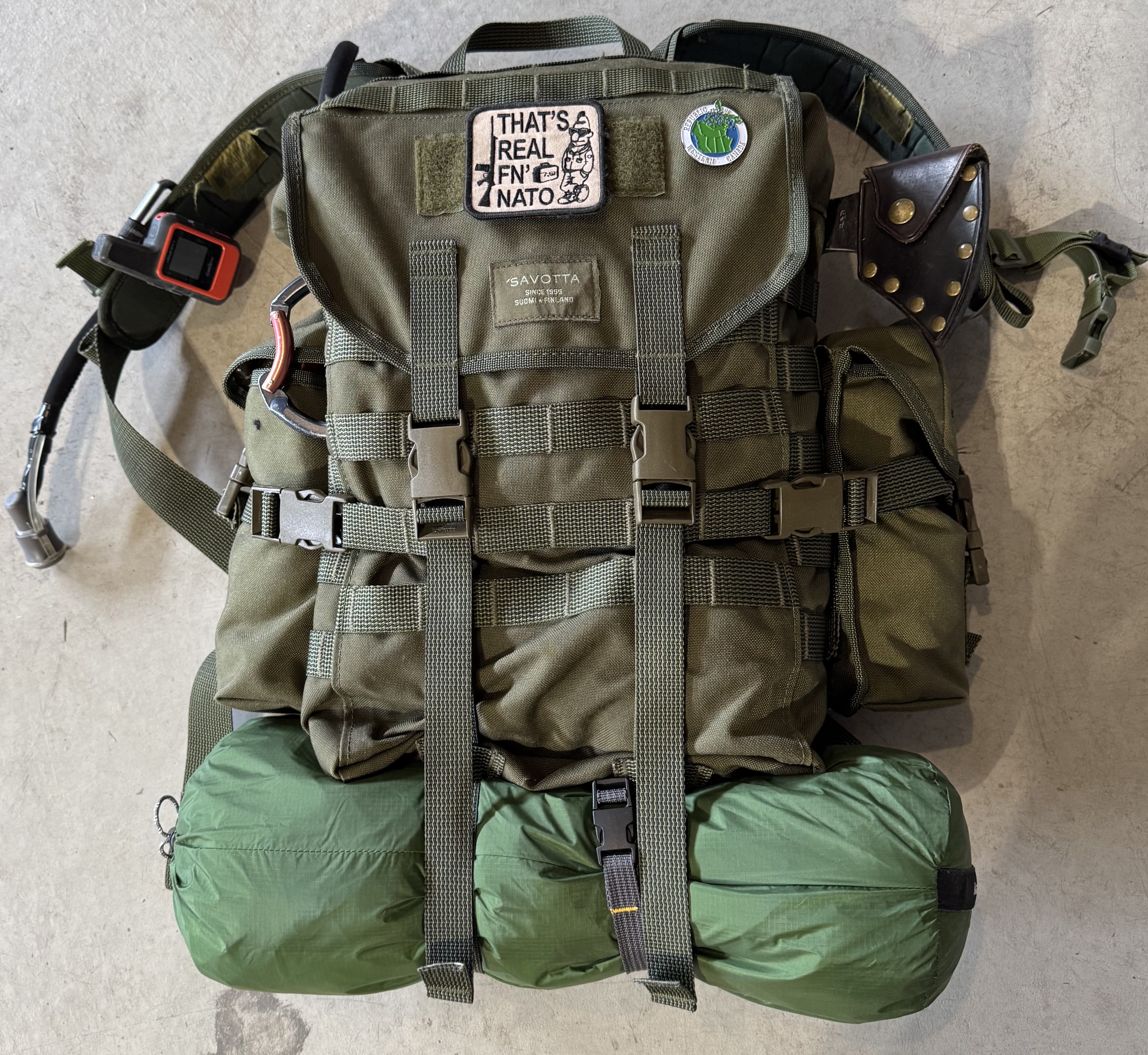 >>64560450What mods have you done? I put a benchmade SOCP behind the side pouches in the middle zip ties I. so I can sneakily take it out if needed. I cut off the side straps and made them into a chest strap, the side straps are completely useless if you have side pockets imo. I run the smaller side pickets, I can fit a 1L Nalgene in each pocket perfectly if I wanted. I’ve done 3 nights in this pack before. Pic was before I modded