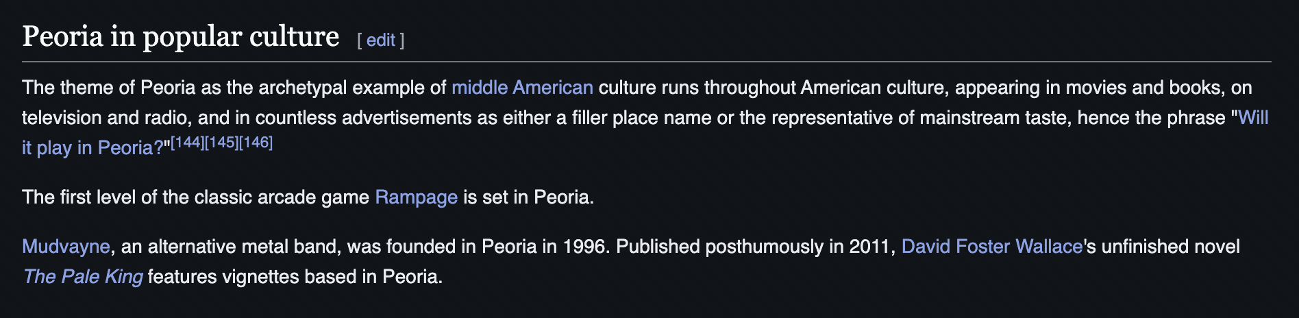>>64630506Born and raised in Peoria, Illinois. Cope however you want, though.