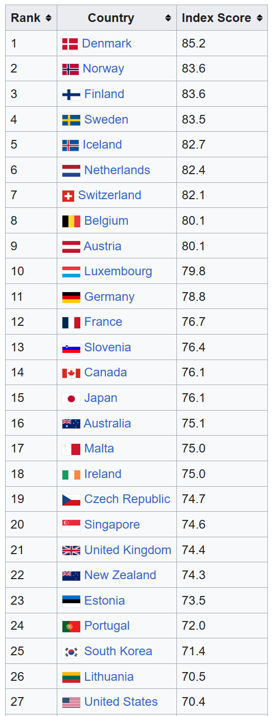 >>64646576quant here; indices are hopelessly manipulated, and since there are many more countries than the US, usually in an anti-US way.in the case of social mobility, the number you see is a mix of factors including inherited wealth, parental income comparisons, education, and the big kicker, various adjustments for "income inequality", which is injected in most European-based indicesEuropean governments LOVE "income inequality" because it's a very moralistic way to explain away their economic stagnation. let me show you the maths of it:compare a society where out of 10 people, 1 earns $1k, 1 earns $2k, 1 earns 3k ... and the last 1 earns $10kvs2 earns $2k, 7 earns $4k, and 1 earns $8kthe former has great "income inequality", but the average person is better off and overall society is richer.the latter has less inequality, but the average person earns lessthe social mobility index also gives greater weight to employment, but not entrepreneurship opportunity, although owning a small business is one of the best ways to earn extraordinary income.remember that European society is all about flattening inequality, and mobility is about earning more than your peers. they're fundamentally oppositional, so if the results appear to point the same direction, something is fishyor in 4chan parlance: the crabs do not like to see individual crabs get out of the bucket>>64646665Europe, unlike America, has higher taxes in general and much higher VAT, a consumption tax which basically eats at least 10% of your paycheck more than Americans pay, and its economy is mostly controlled by the governmentstudies show America has the highest number of first-time millionaires who did not inherit their wealthcompare the 20 largest listed corporations of any European country against the 20 largest listed corporations in the USAnote down to what extent they are privately or government-owned, and when they were incorporatedtell me what the results say about income mobility