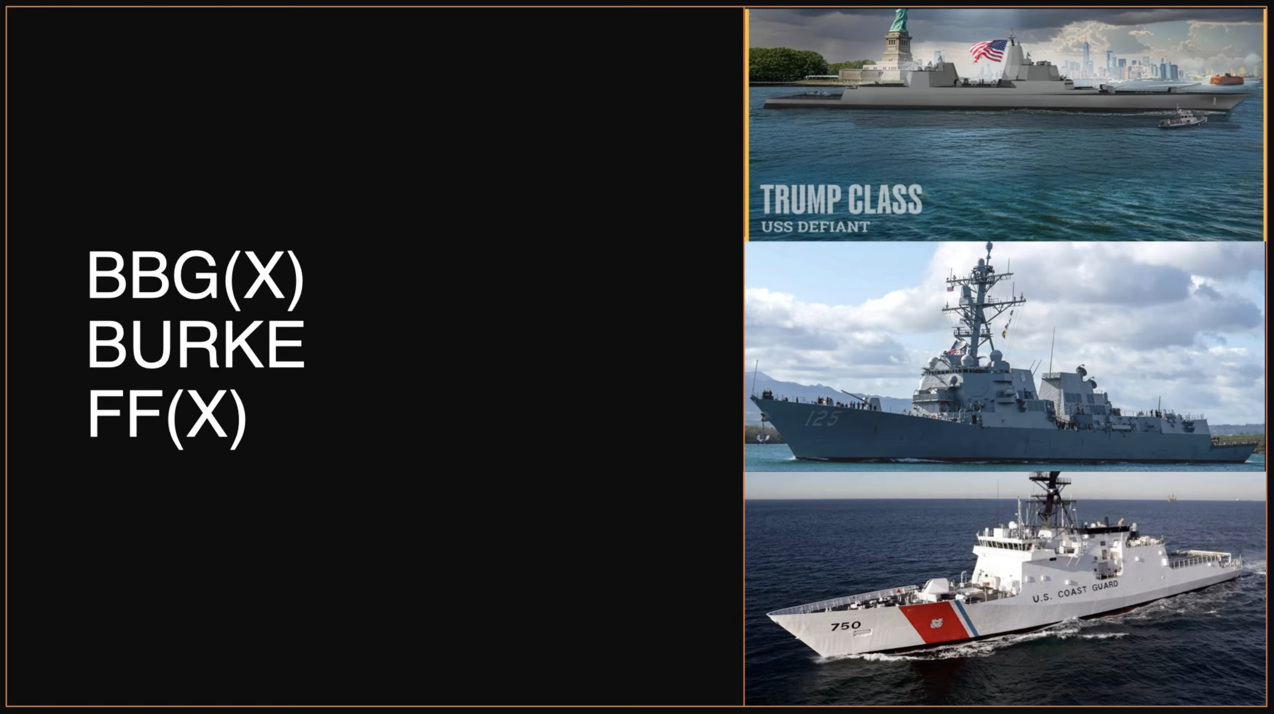 Ladies and Gentlemen, I present to you the future of the US Navy:- USS Distraction from Epstein Files.ppt- USS Arleigh Burke Flight IIIA overloaded with 6 upgrades on a hull stretched 3 times and close to sinking with 50 year old design choices- USS Coast Guard Cutter with 4 missiles in a shipping container strapped on the Helideck so you can't use an anti-sub heloFucking grim.