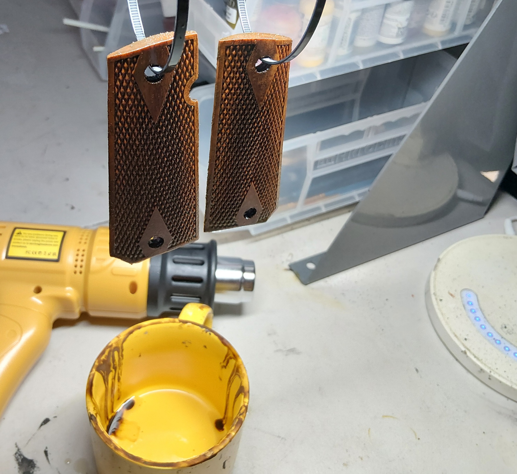 Arts and crafts Sunday, bought some cheap 1911 unfinished walnut grips to try my hand at staining/finishing.