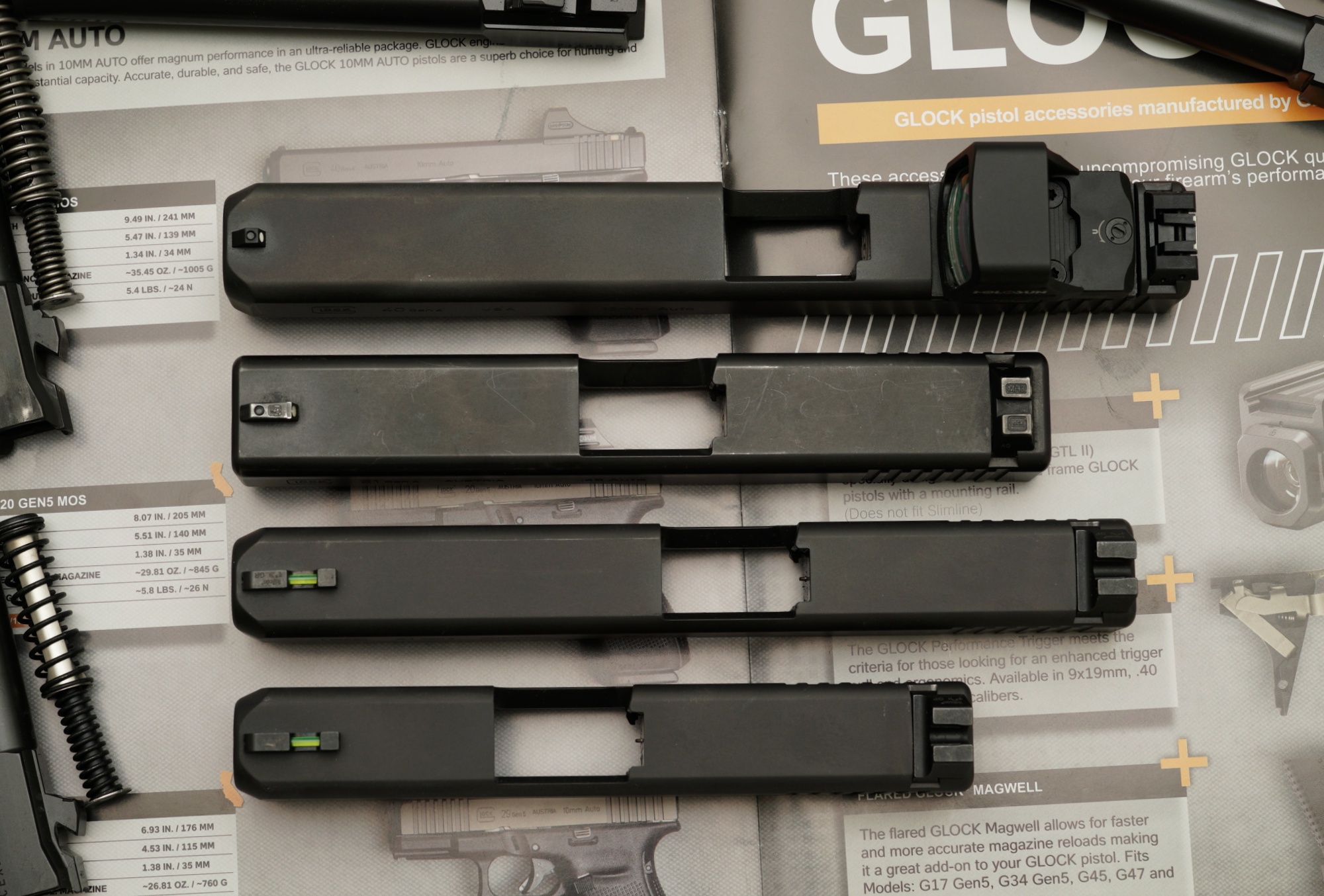 >>64688051These slides, top to bottom, are 40, 21, 41, and 30S. 20 will be same size as 21, except 10mm. There are 10mm conversion barrels for 41, but note they are special size, the ones that are made for 21 except longer, will not fit.