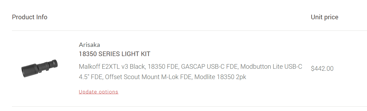 >>64727751Spec precision also has, the far right option I think is what you would want to try. https://www.specprecision.com/tactical-flashlights/m340dft-pro-mini-scout-light-pro.html#/m340dft_color-fde_floodlight_mlok_adapter$70, comes with all the bits. The goal is just to use the light body itself with a legit head and tail cap. The chink head and tailcap you could combine with this chink body (after cutting off the Mlok mount and hitting it on a belt sander) for a probably decently performing random handheld admin light for the car or toolbox or to give to a kid.