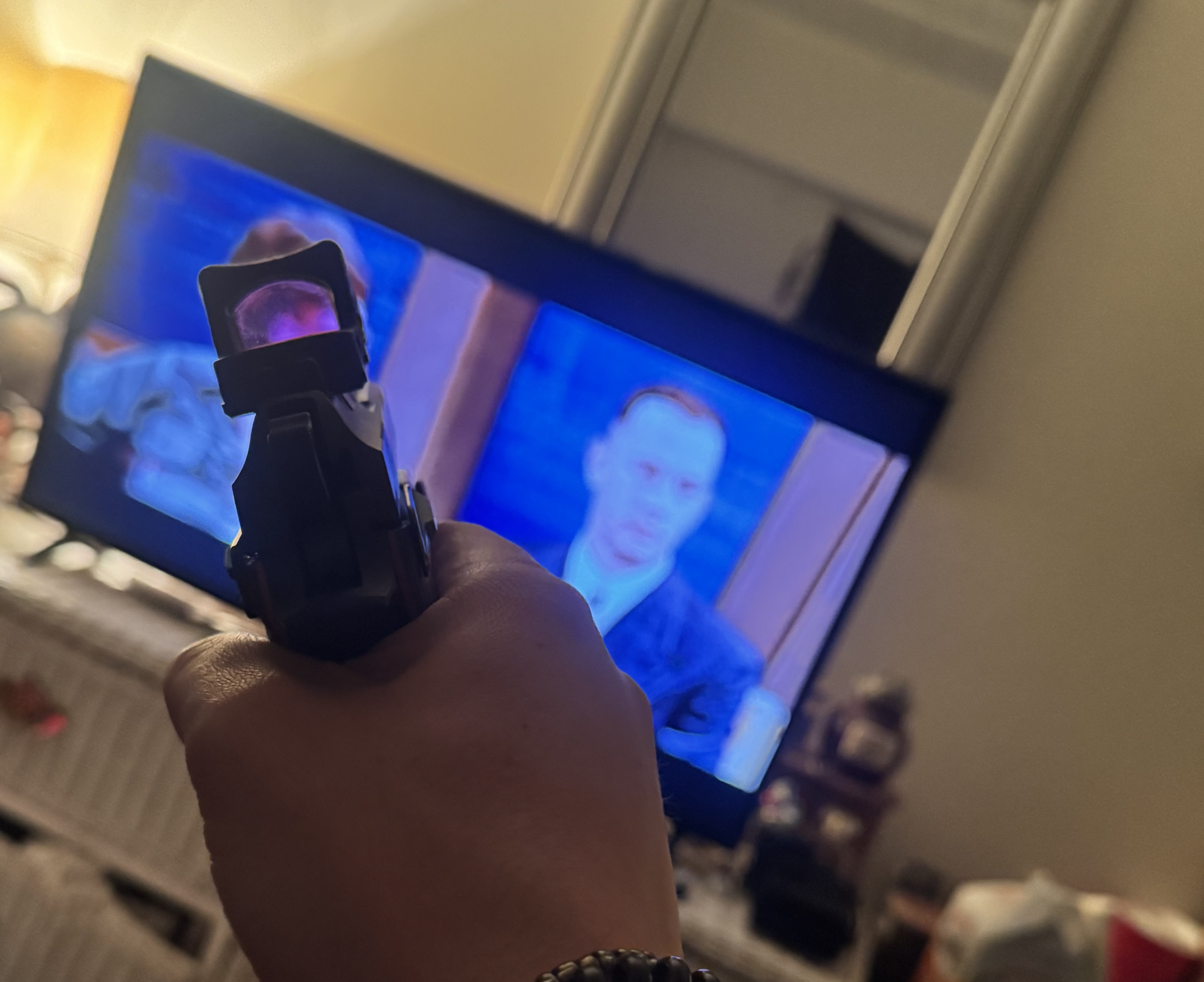Accidentally almost flashed my gun at the company Christmas party