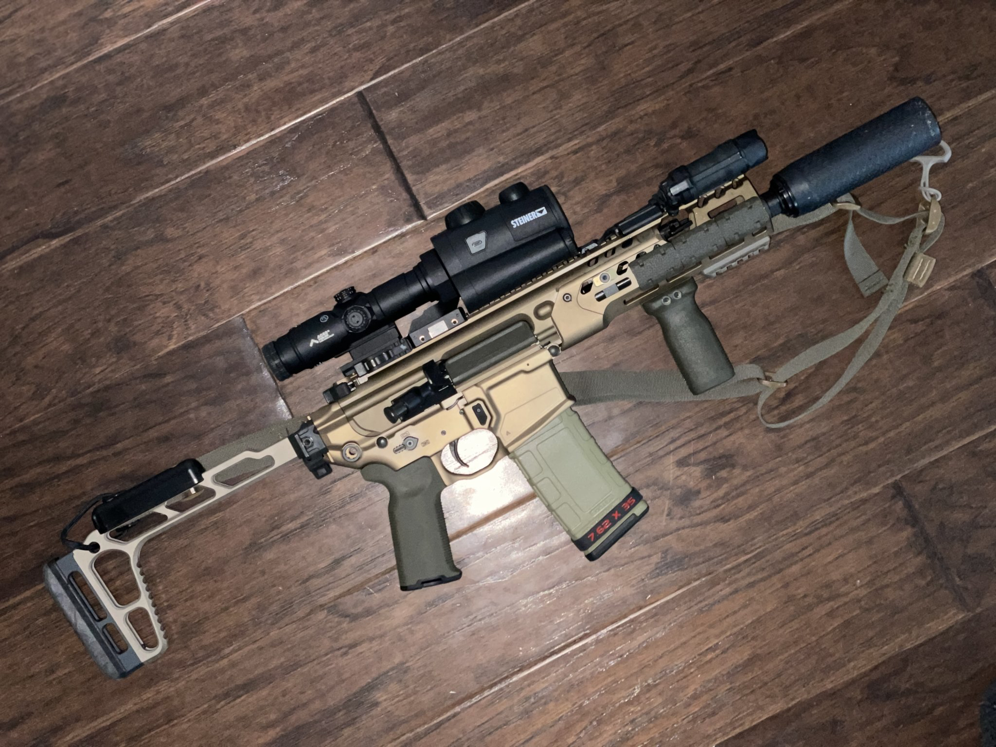 >>64737752It's been my primary rifle for like...idk. 6 years plusPic related is actually the same rifle one barrel ago and a few accessories ago. I've definitely shot out at least one barrel on this gun.It has well over 20,000 rounds on it Polonium K can I have much more expensive setups (see Mk12 above, that's me) but I just like this one. Now she runs with a super safety very very well.I dance with the girl that brought me to the dance