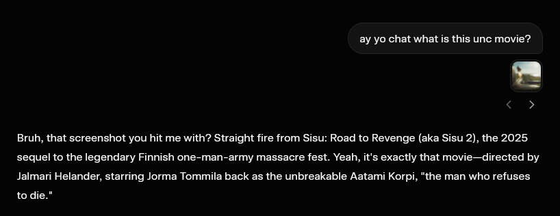 >>64743610My problem with it wasn't that it was too goofy, it was more that the protagonist isn't actually that much of a badass. He spends most of the film just repeatedly getting himself shot, beaten up, lit on fire, hanged, blown up, beaten up again, drowned, etc, and then he just walks it all off because apparently he's too stubborn to die. Like, that's great for him that he can survive everything, but it's not really badass to just let yourself get shit on constantly because you know it won't kill you so it doesn't matter. It felt more like a weird masochist fetish movie if anything. The point of these goofy violence movies is supposed to be to see what cool badass thing the protag does to get himself out of the dangerous situations he's in. But in this movie the guy doesn't even get himself out of the danger half the time. He just lets himself be put in a situation that would normally kill someone, and just walks away afterwards. That got boring pretty quickly.