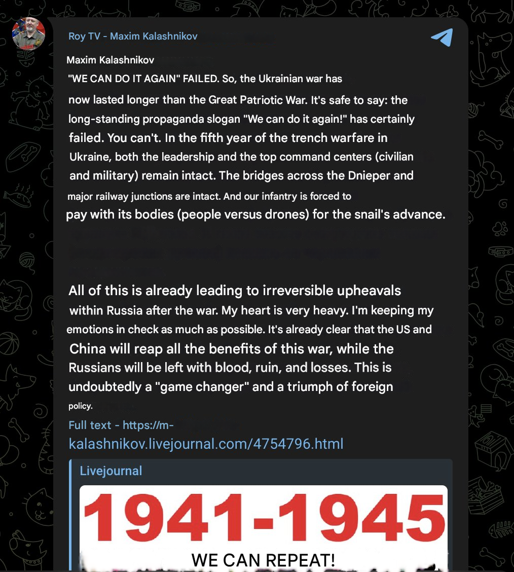 Post your highlights. Indecipherable vatnik posts, goriest drone videos, favorite characters.For me? It's Big Prig.