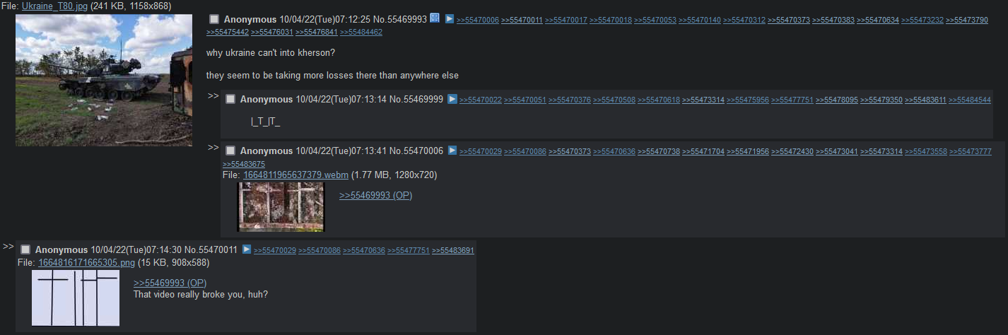 It's been interesting to see Russia's ability to wage war diminish through the number of spam attacks directed at /k/ following a particularily humiliating defeat.Mods get a lot of shit but I think they've done a pretty decent job at fighting this, all things considered.