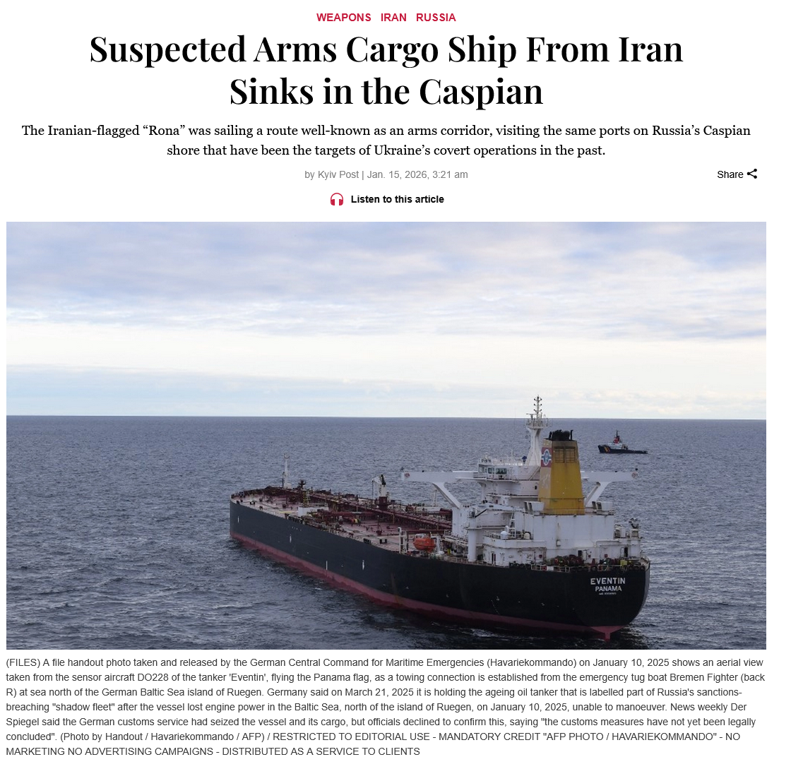 Ukraine nuked an Iranian arms vessel.