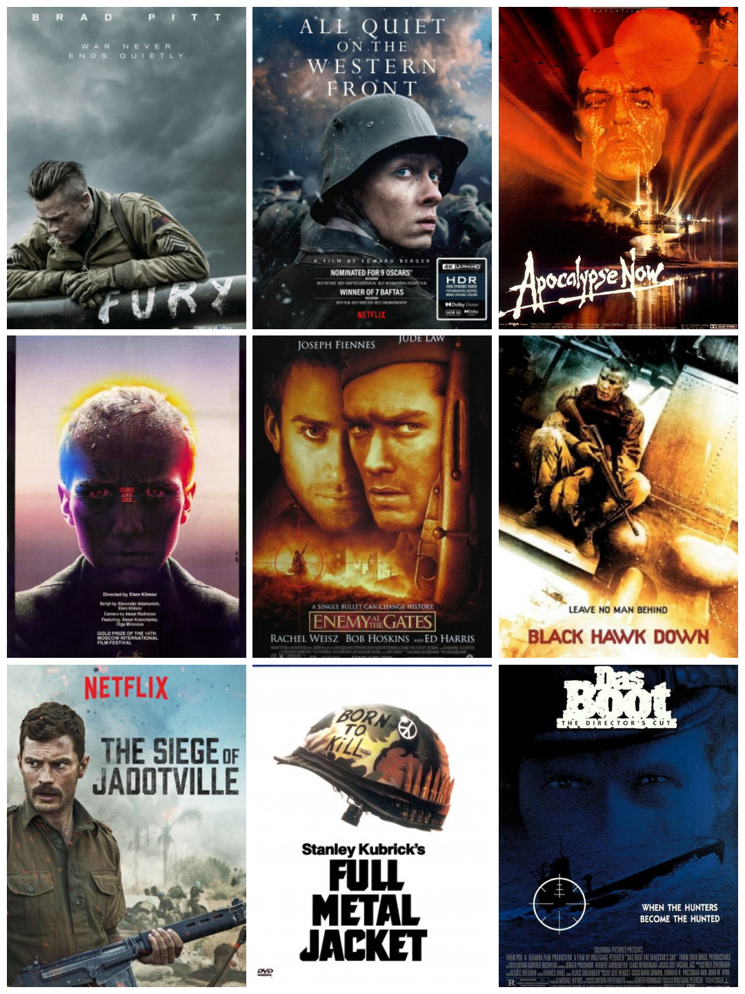 >>64774436if you are wanting more 'serious' war movies that dooesnt necessarily focus on guns/firefights but just good war movies, these are the essentials>inb4 apocaplyse now isnt a vietnam war moviecounting it anyway because its a classic