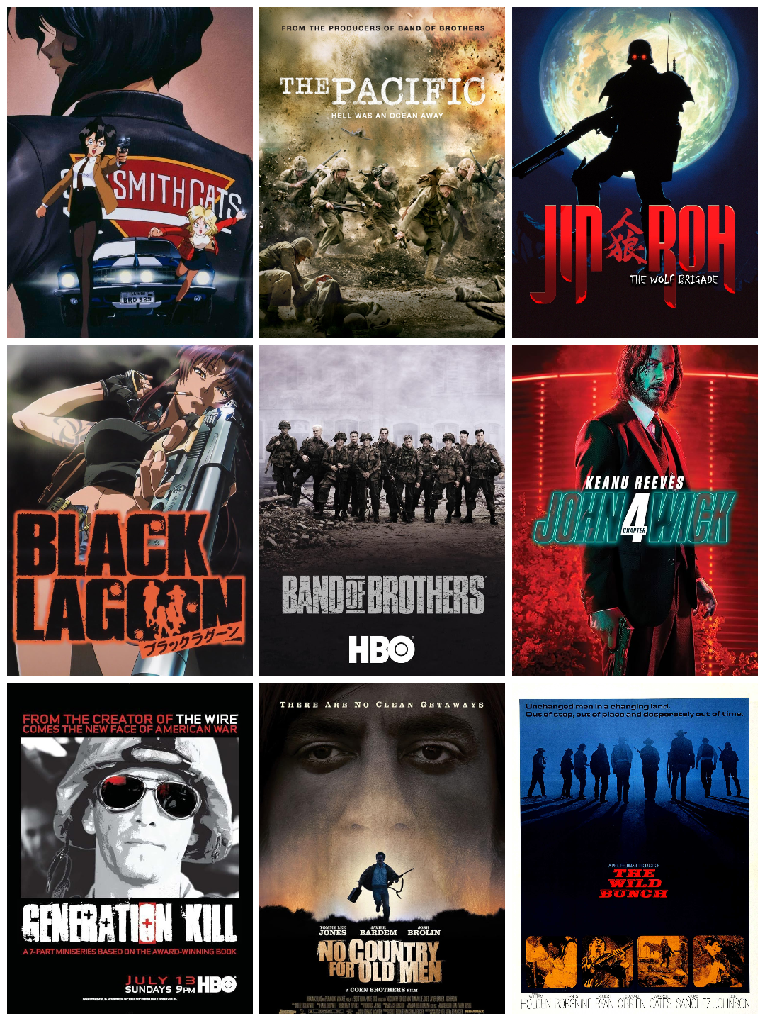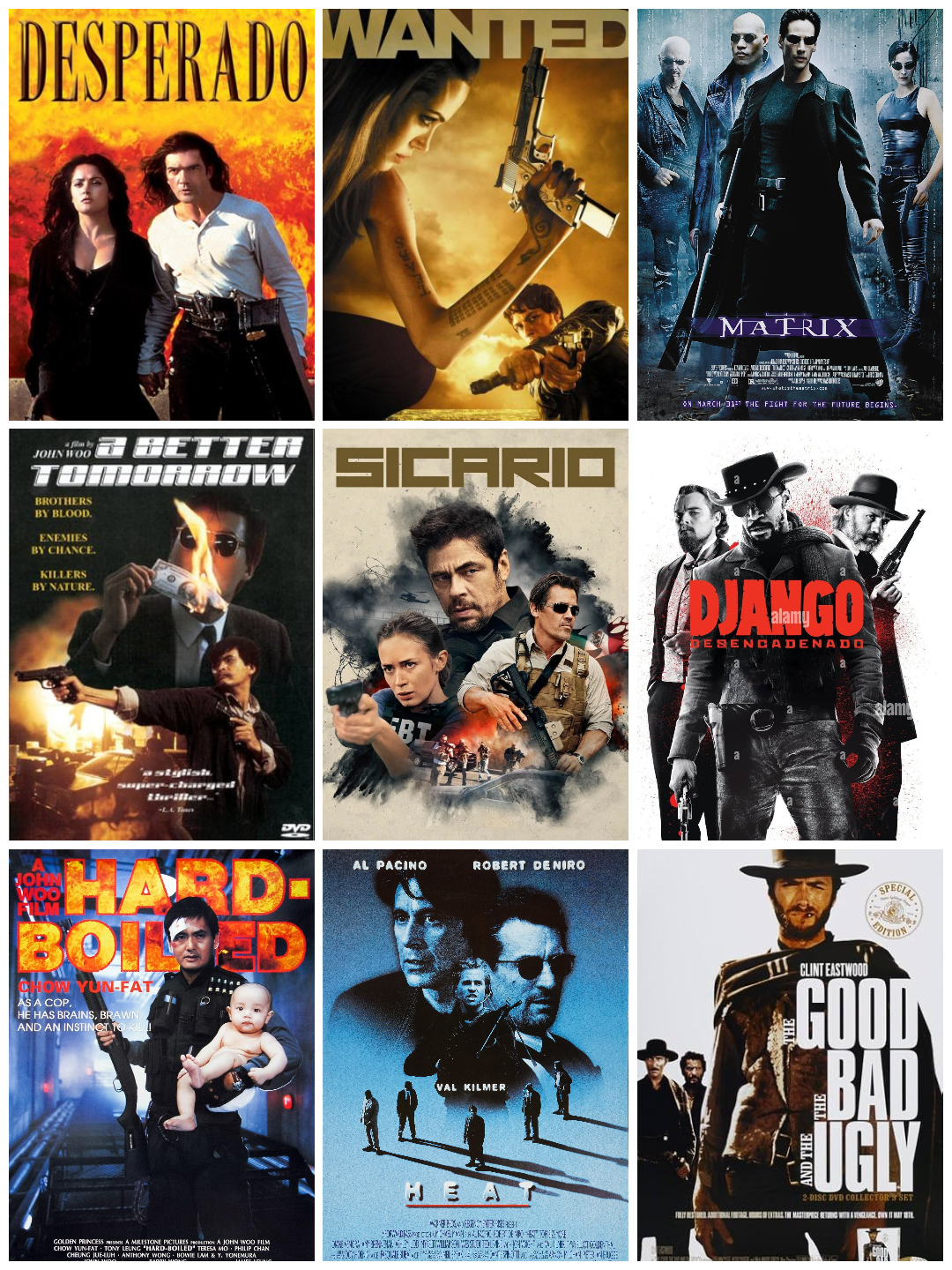 >>64774436for /k/-esque movies because of the gunfights, these are also goodi would include more john woo movies but it would wind up eating up the entire collage, if you havent seen them they are all greatpure cinema slop where everyone has unlimited ammo, a bullet hitting a red tank makes it explode, and its like the max payne gamesevery movie just has them dual wielding berettas and diving through windows while shooting, its pretty sickhonorable mentions are also lethal weapon & die hard