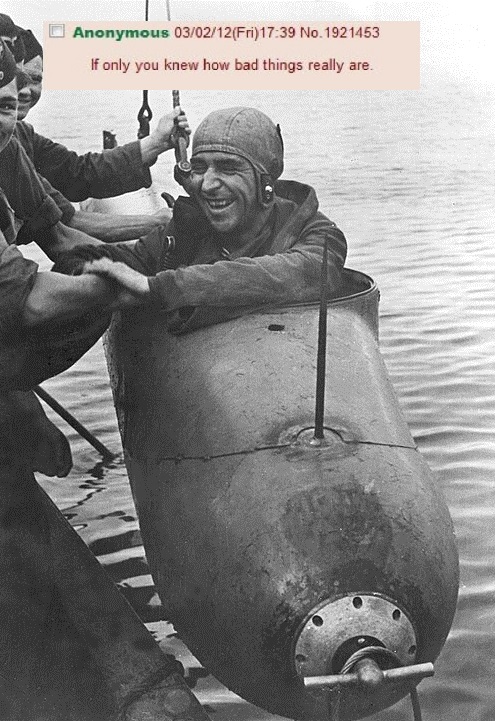 >>64779948>>64779941Sorry, no boats for you, report for training on the Negerhttps://en.wikipedia.org/wiki/Neger_(torpedo)