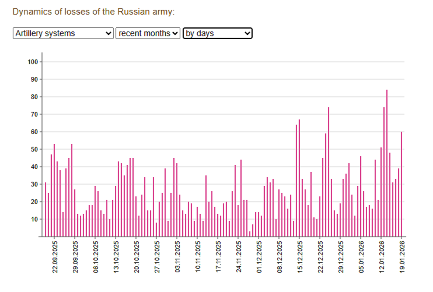 >>64780444>Artillery systems — 36393 (+60)Is there a counter-battery duel happening around the Fortress Belt rn or something?