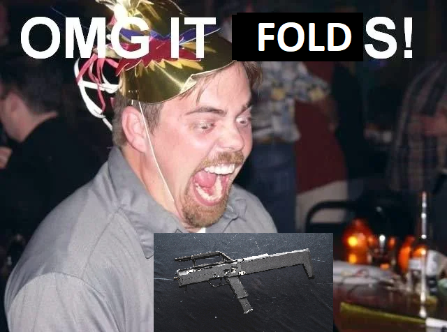 >>64789525The bird head grip one folds too and not much further than the pistol grip one. I think it's a cool concept, would get it if semiauto and it folded more. Not sure how they'd achieve that since the mag tube runs into the trigger guard making it kinda bulky to fit in a pack or any type of scabbard. It also doesn't lock into place when folded so seems cumbersome.