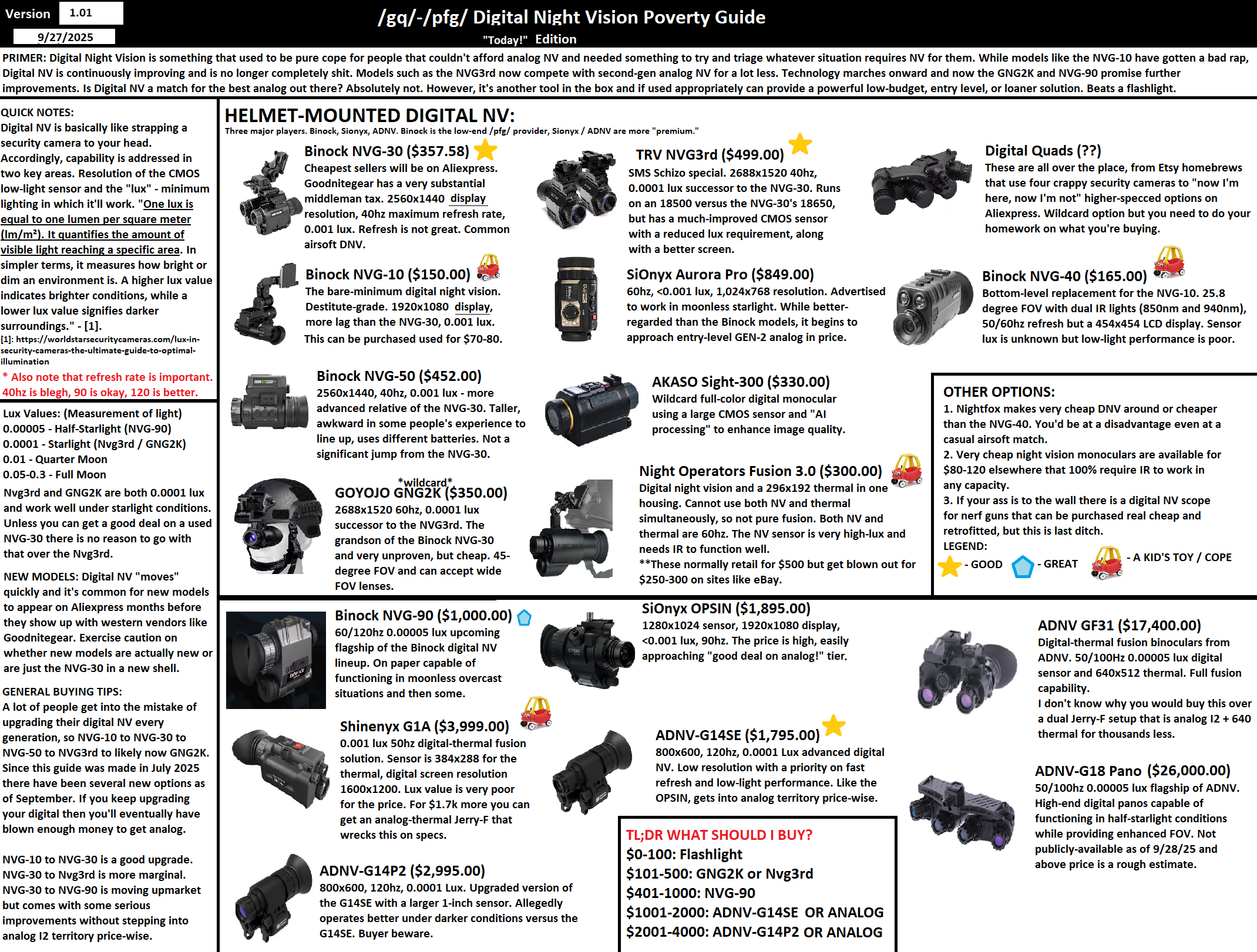 CODE: * = active NIJ-cert, ^ = ICW / non-standalone, DND = do not drop / drop protection is sketchy, ** = military.