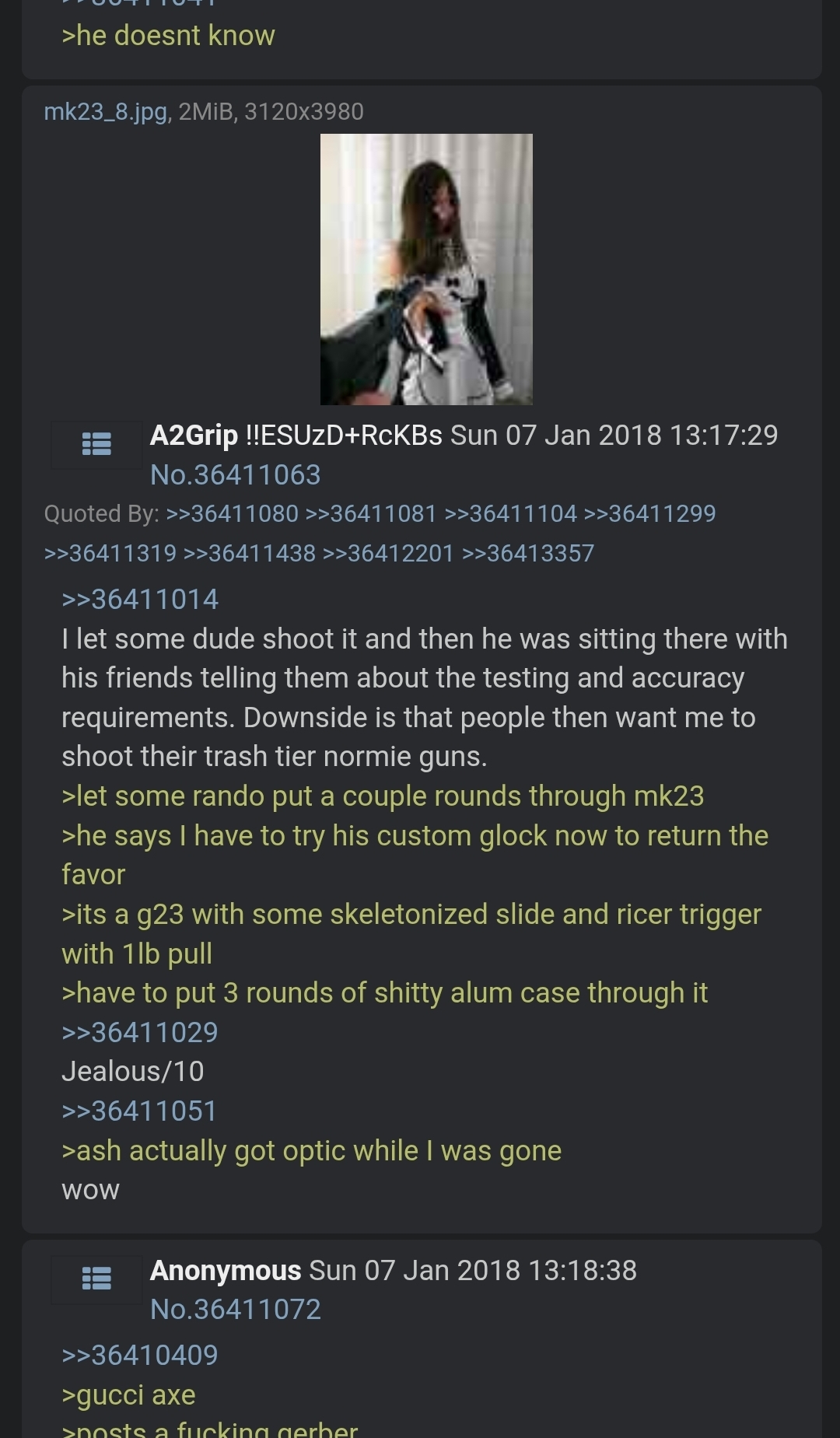 >>64805428I'll keep that in mind. >>64805429I like the contrast so that people at the range know I'm cool.