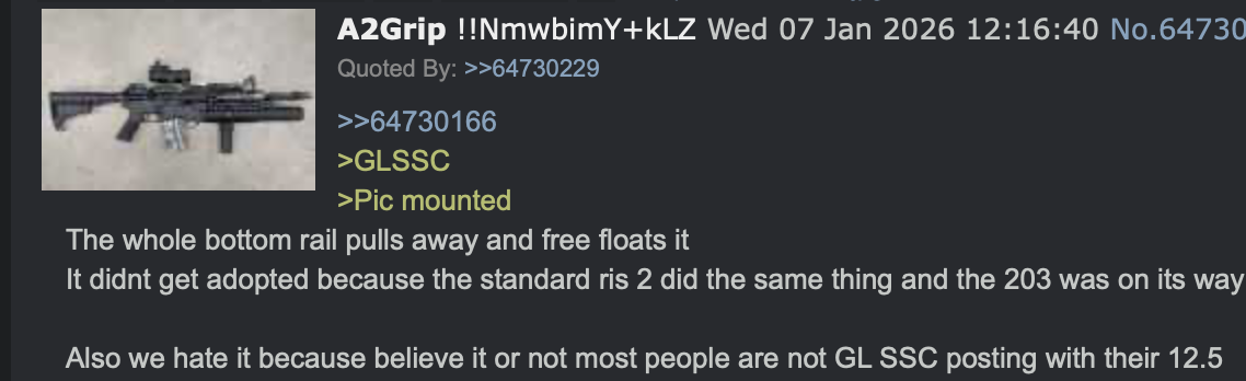 >>64806548Scalarworks owner was really funny to talk with>They told me the scar was heavier>So im thinking like 60grams, because thats heavier>A POUND>HOW DID YOU ADD A WHOLE POUND TO THE RIFLE>A WHOLE POUND>>64806569Drip