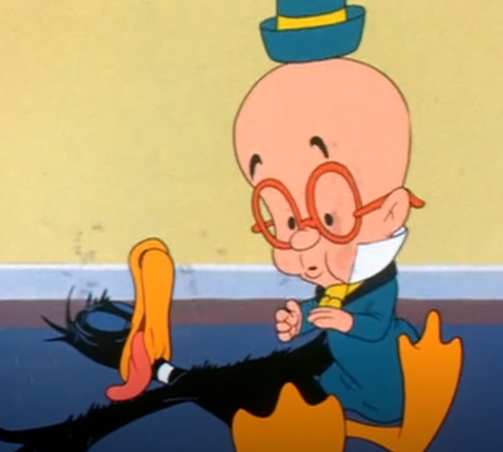 I like to imagine a foghorn leghorn exclamation and a loony toons tire screech.