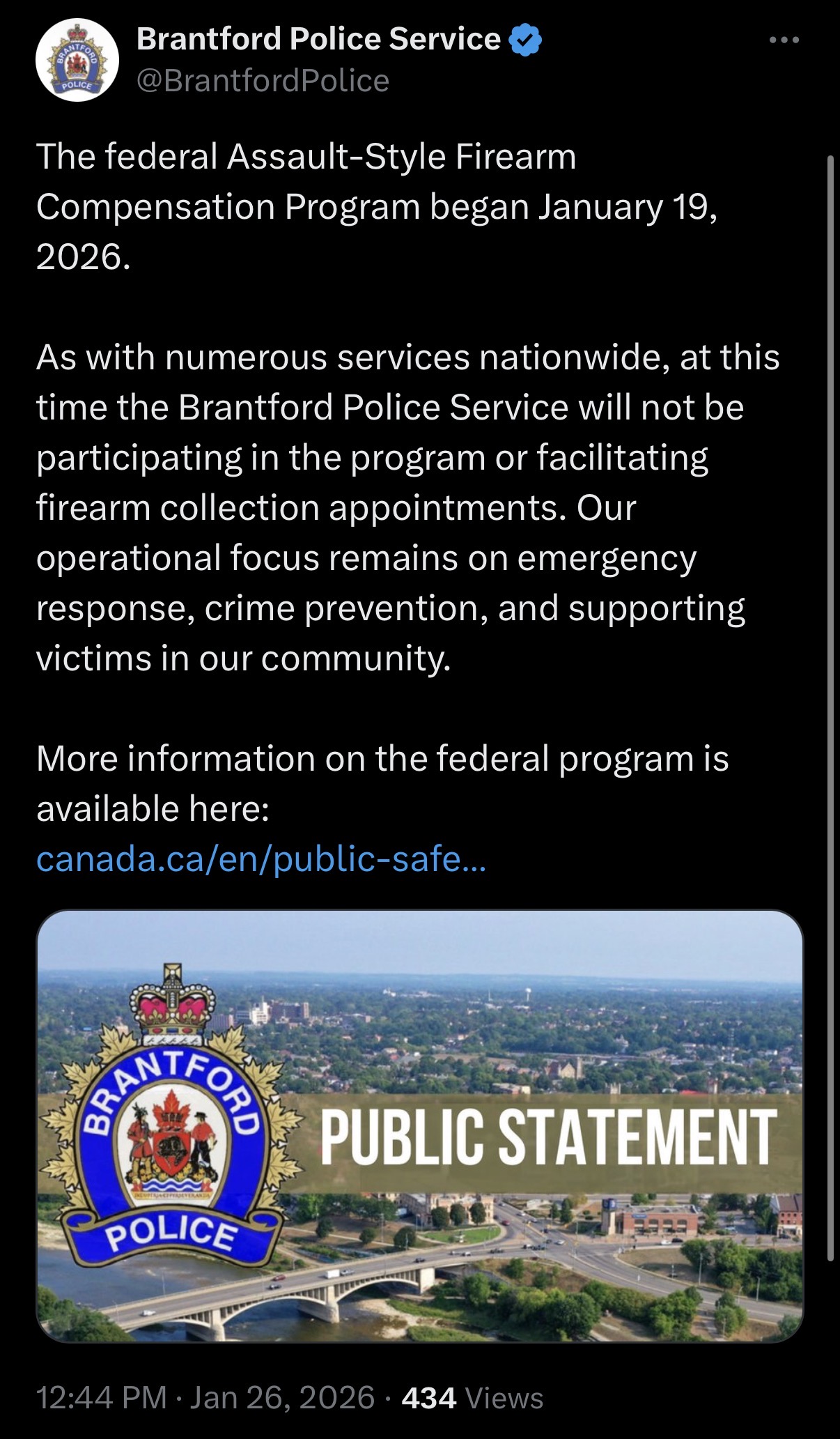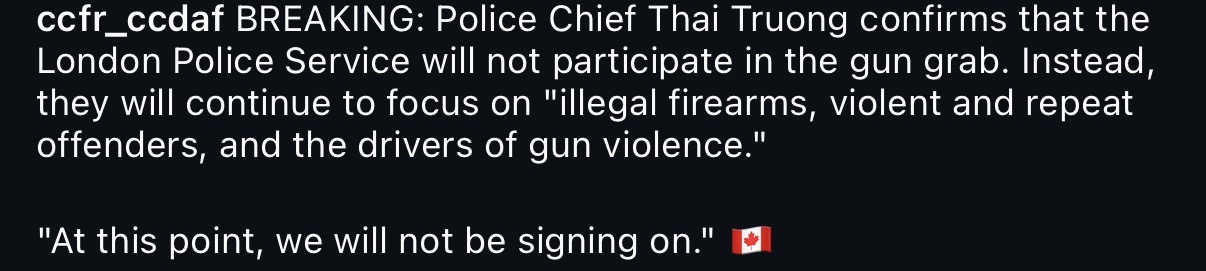 brantford police not participating in the buyback. up to nine police forces in ontario which is pretty big.