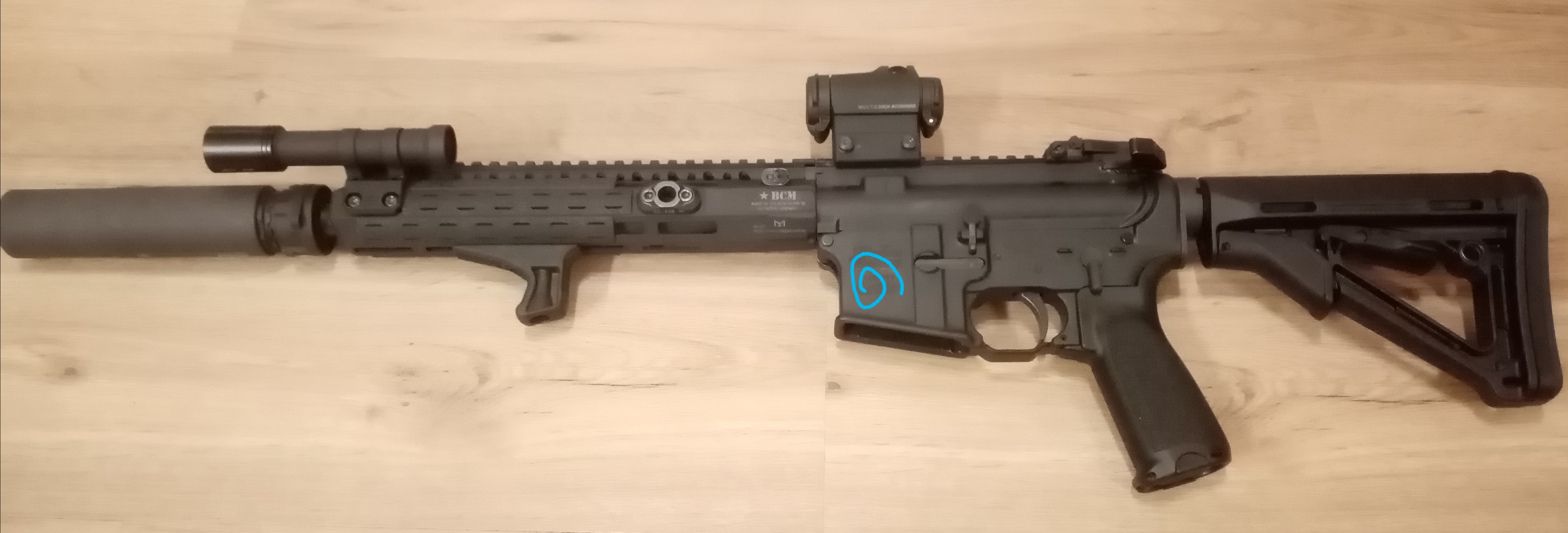 >>64828923>>64828919I could've went with the mini flash hider but it recessed more with the micro break and leaves more space in the supressor