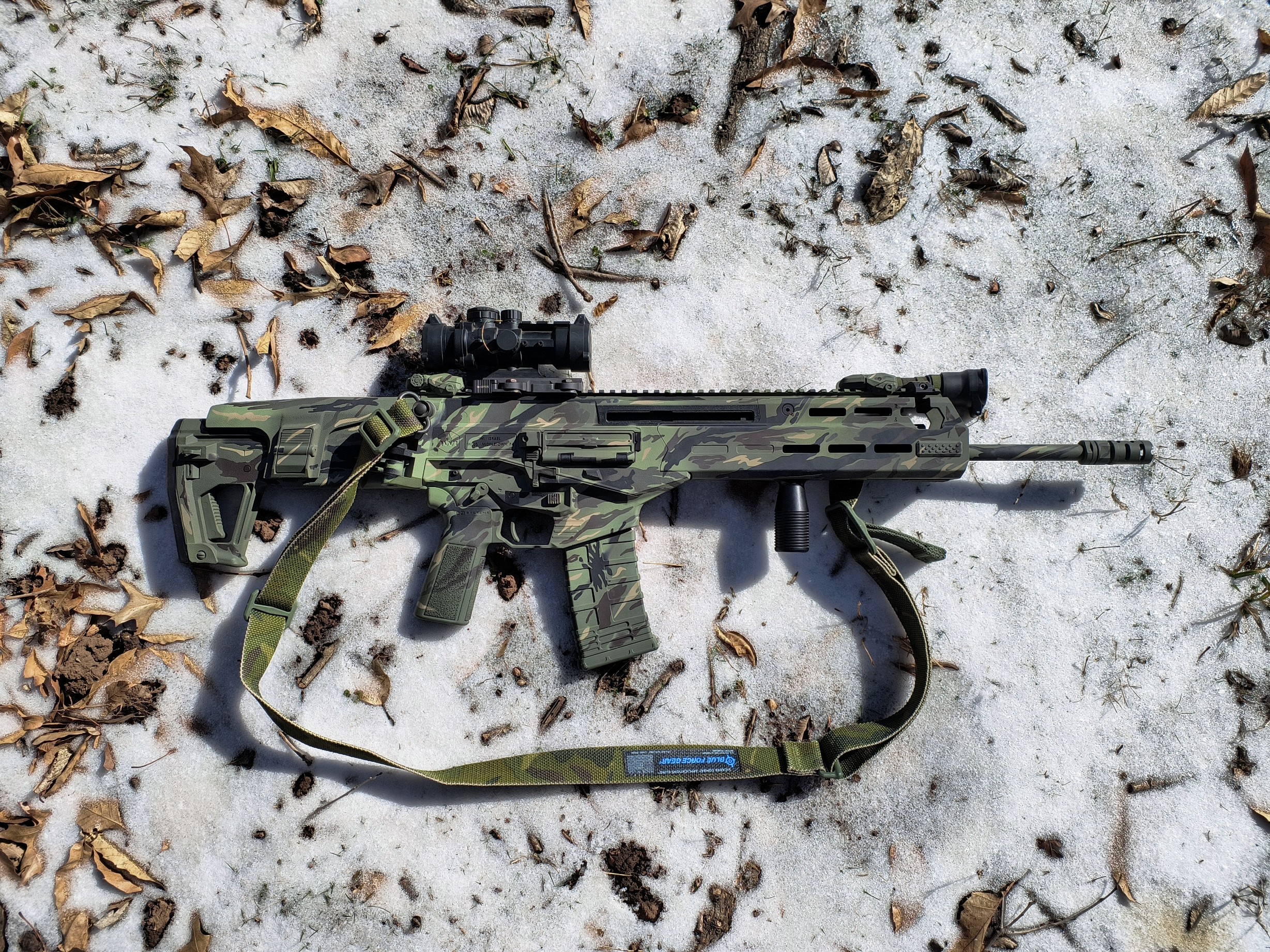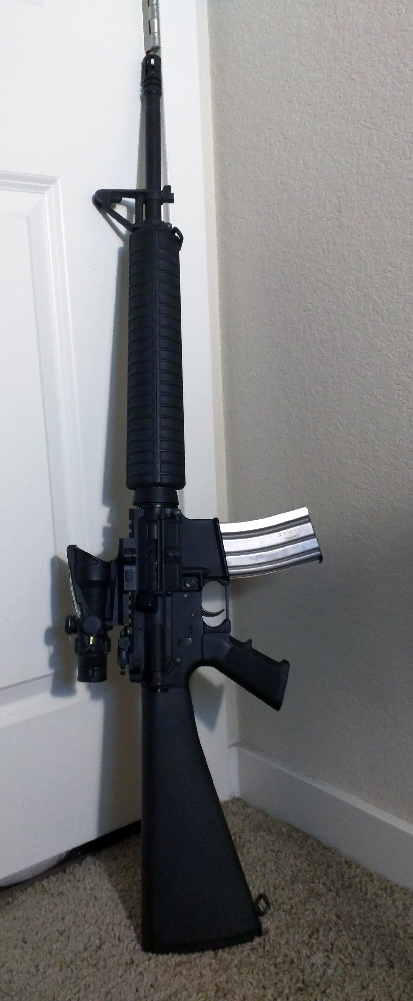 >>64832211>fixed sightsNo. Surplus KAC rear with folding sight block front. No tape. Just use different types of magazines for different ammo. 8/10