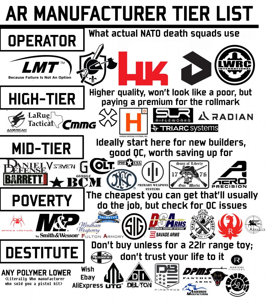 Is there a wiki for buying an AR? I was thinking about getting a 3 pack of stripped AR lowers from PSA for ~$100 before they get banned in my state because I don't really know what I want. I was looking at that magpul daniel defense because it was a lot cheaper than the others but it went out of stock on buds