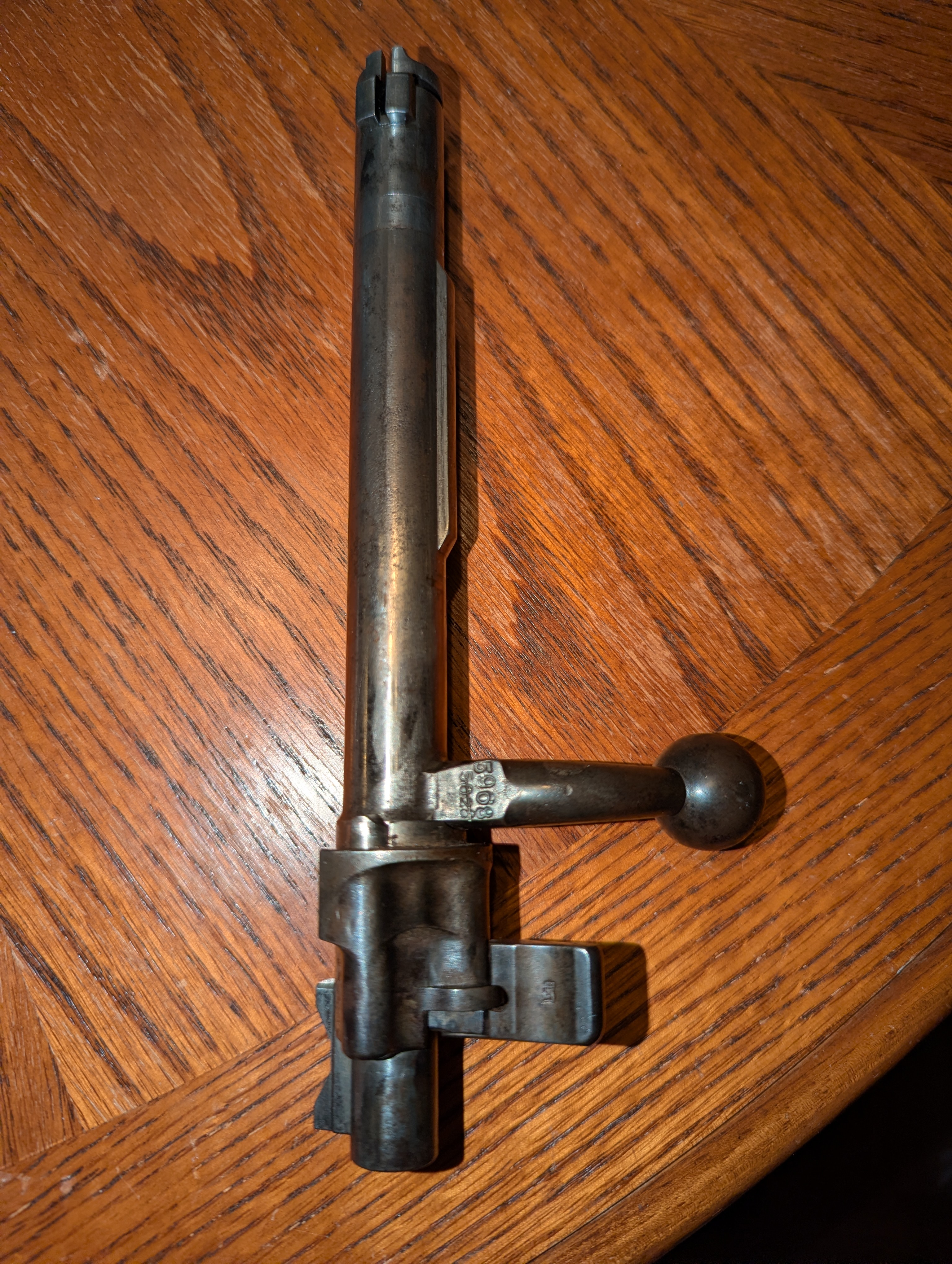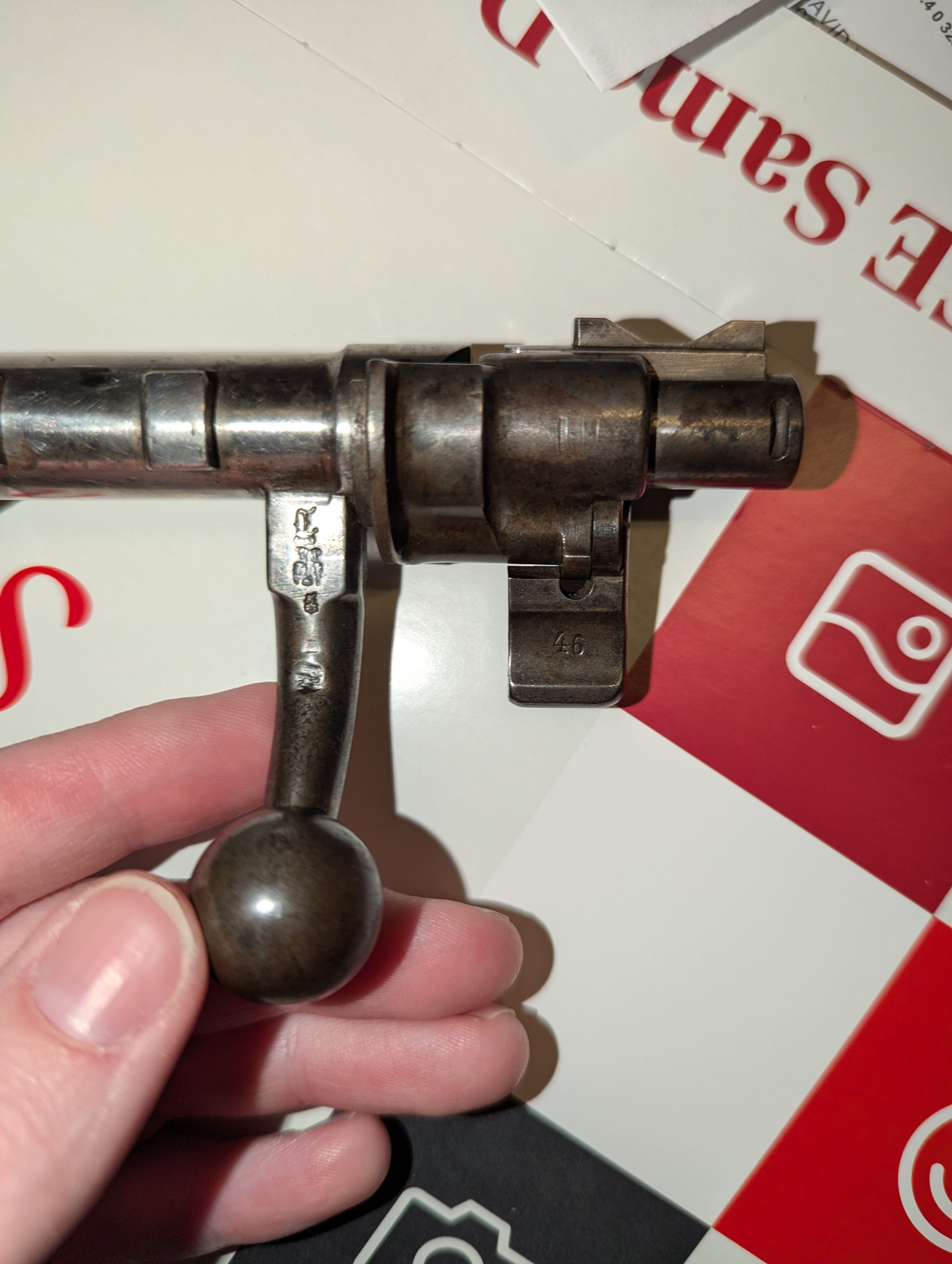 I need some help identifying this Mauser Bolt. Rock Island auction sold it to me as a 1907 Spandau GEW 98. I had issues fitting the bolt so I ordered a replacement which fits. Could someone take a look at the photos and provide the model/location/factory and all that Jazz. The original SN on the belt has been marked out but still visible. This was done for matching the rifle delivered. Greatly appreciated!!!