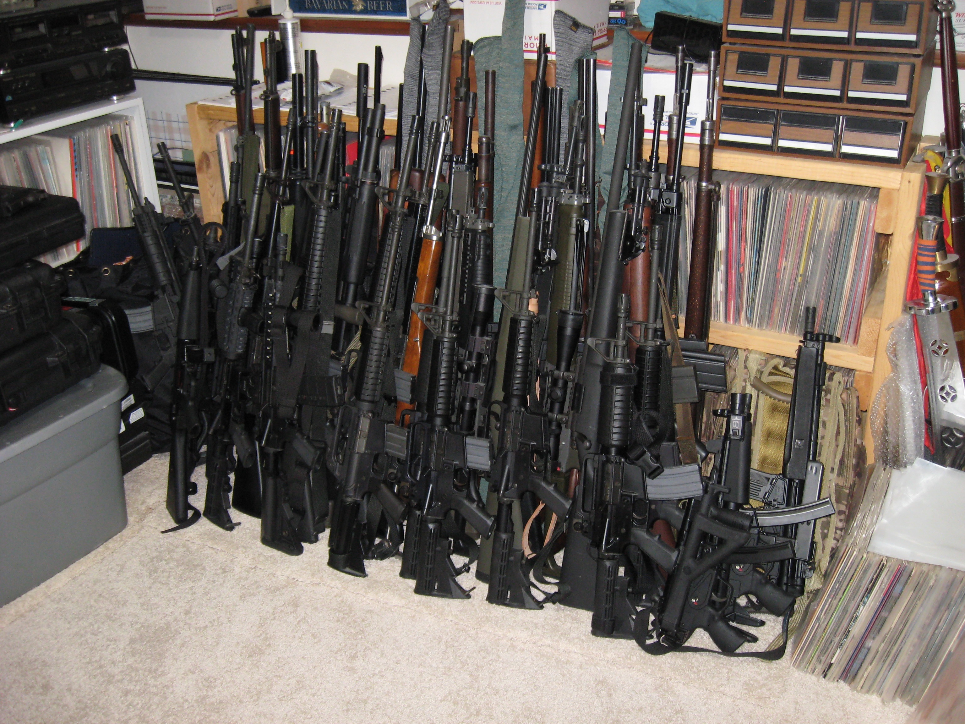 >swords, vinyl, cassettes, and guns