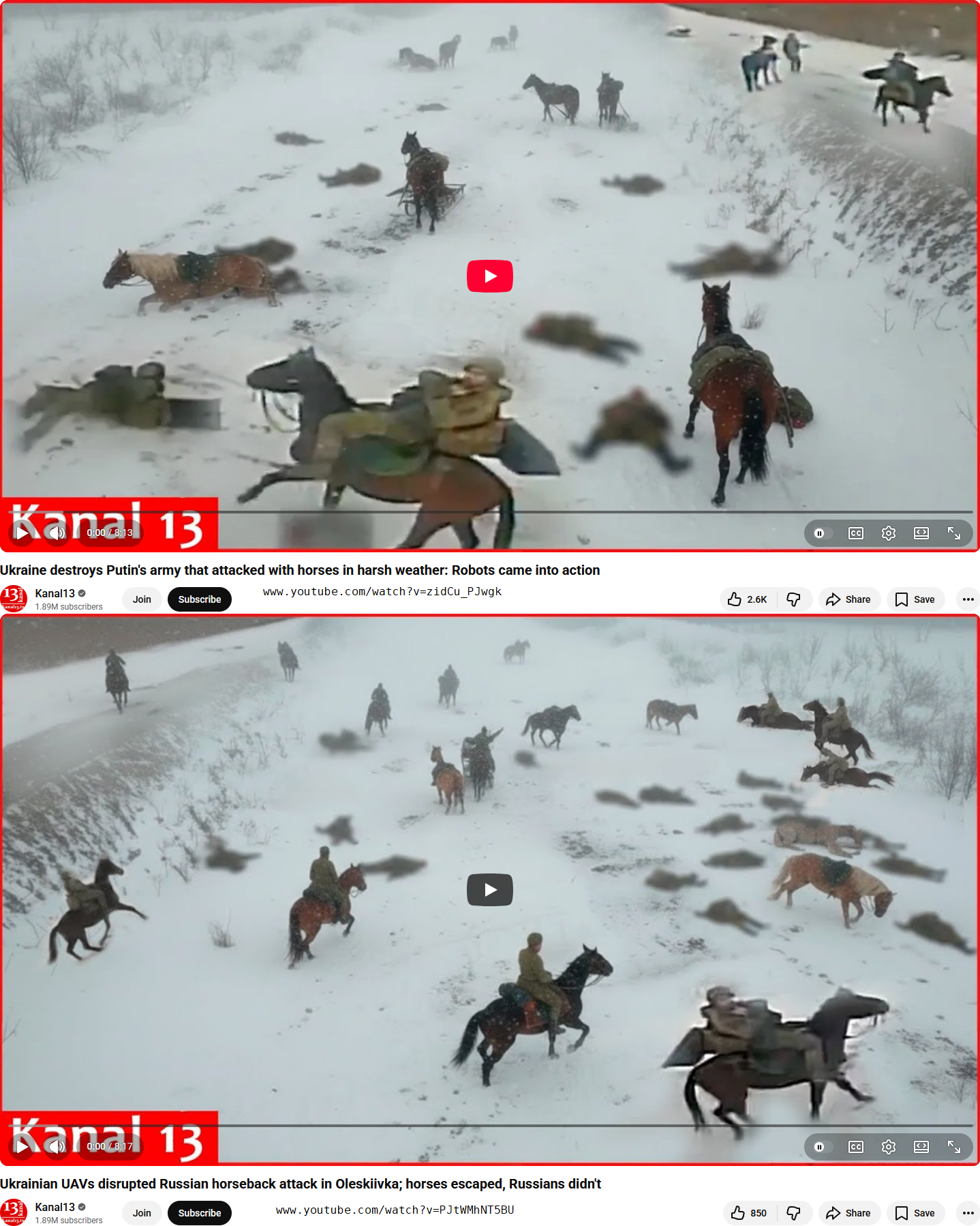 >>64830799From a quick google image search a clickbait youtube channel from Azerbaijan made purely out of low-effort sloppy fake thumbnails, text-to-speech and slightly related clips spliced together decided mass cavalry attacks were bait-worthy.I doubt any mass cavalry assaults ever happened, since it would be impossible to infiltrate and then hide the horses before being discovered, and that seems to be the prerequisite for an attack in the area nowadays, and in any case if such a thing ever happened there's a 100% chance footage would be released and it would be extremely meme worthy and probably spawn a few tens of threads. What we see instead are attacks on small groups of horsemen.