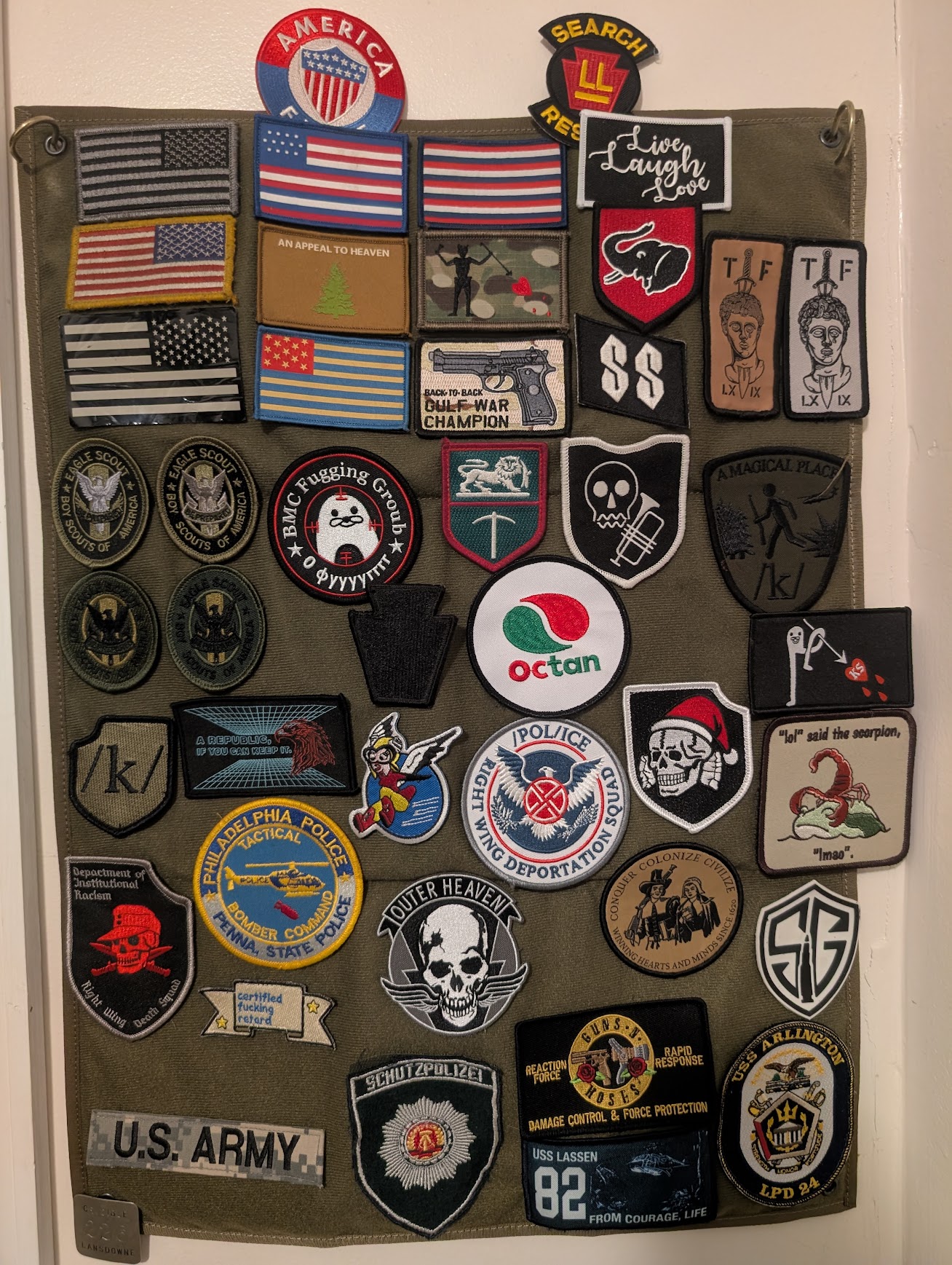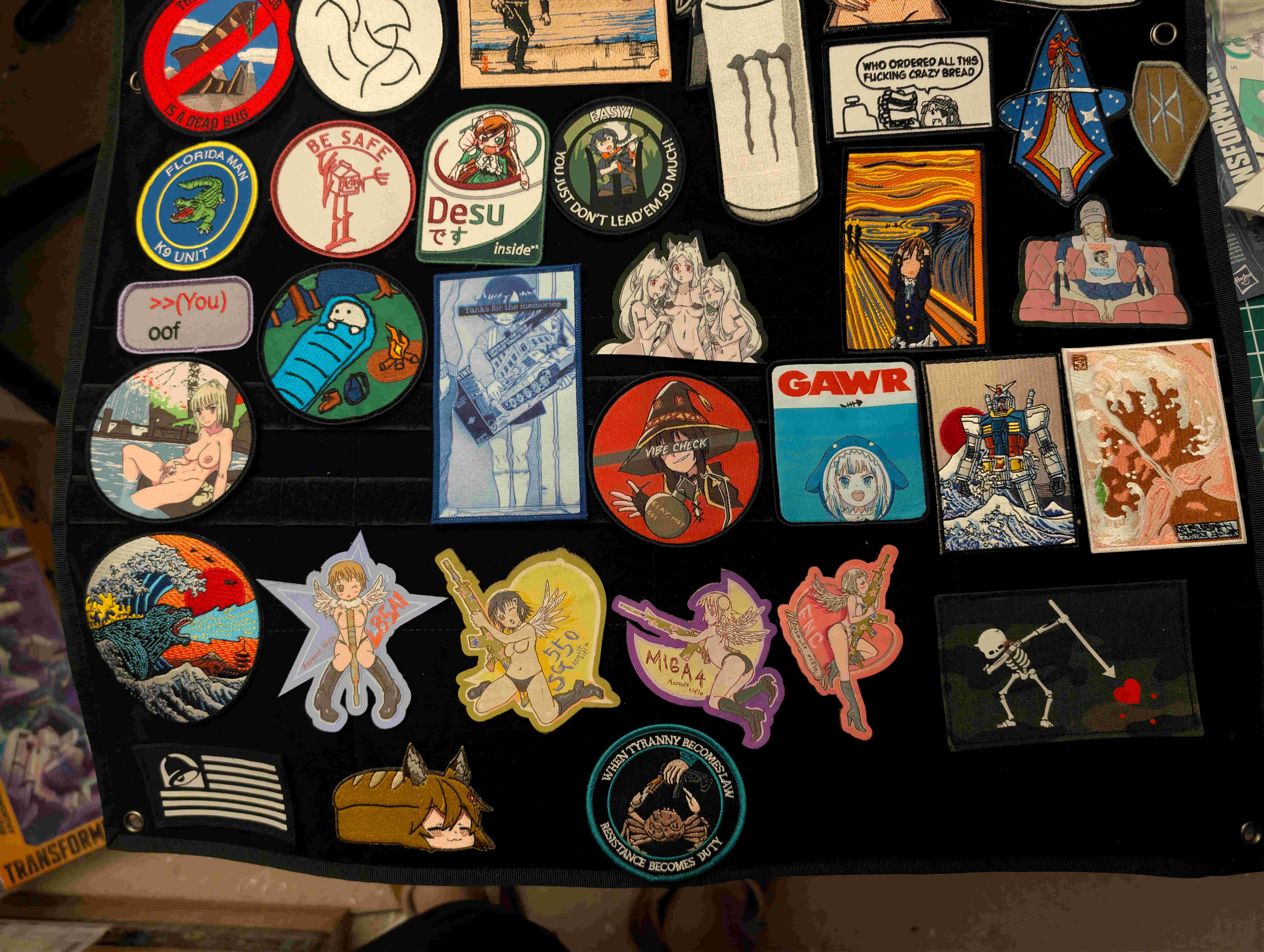 I always liked the idea of novelty patches but I'm too insecure to actually own it unapologeticallyI got a name patch off of aliexpress with a subtle dirty joke and I have second thoughts about that too.