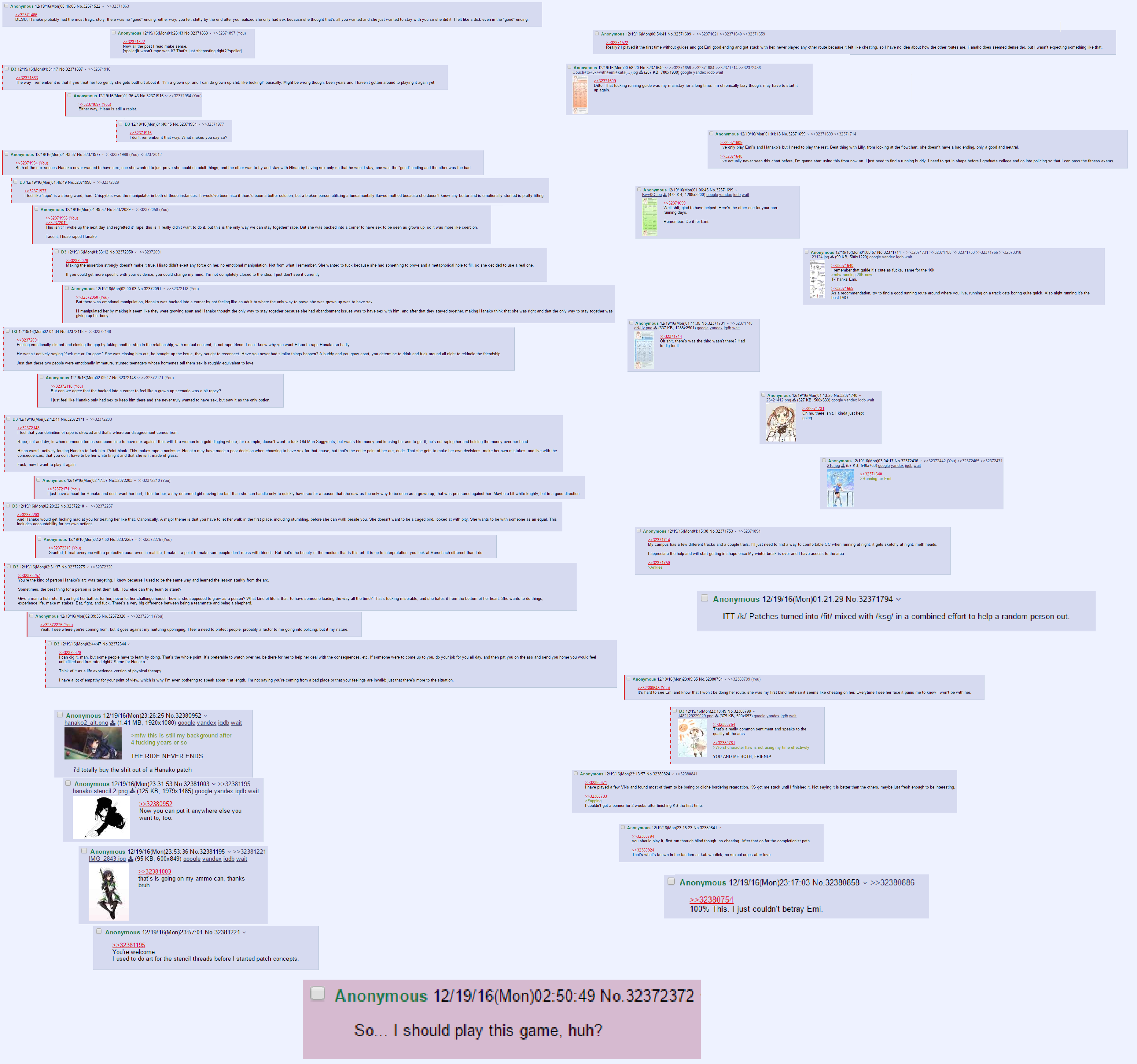 >>64885895It's the logo for Katawa Shoujo, a visual novel made by a bunch of /a/nons over 14 years ago. The premise is that protagonist suffers from a heart attack due to arrythmia and enrolls in a special school for children with disabilities, and was inspired by concept images from the artist RAITA. It's made with a lot of passion, and because it's free, in English, and made by /ourguys/ (a lot of the staff were women, actually) it easily got a following and is easily accessible as people's first VN. /vg/ still has a general for it to this day, but it mostly acts as a containment for schizos.The patch itself is pretty rare because again the tripfag Ai, who ran the long-defunct Patch Dynamics website, only did a single run that sold out within a month. Digging through the archives shows that he got samples from his manufacturer in December '16 and by January 19th 2017 he was all sold out. Ai's trip still pops up occasionally but he went apparently crazy or something around 2017 and stopped fulfilling orders even while his site was still up.Also holy shit this image is nearly a decade old now and apparently hasn't been posted ever since. It was a patch thread discussion from back then.