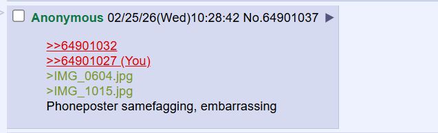 >>64901032>>64901027>IMG_0604.jpg>IMG_1015.jpgPhoneposter samefagging, embarrassing